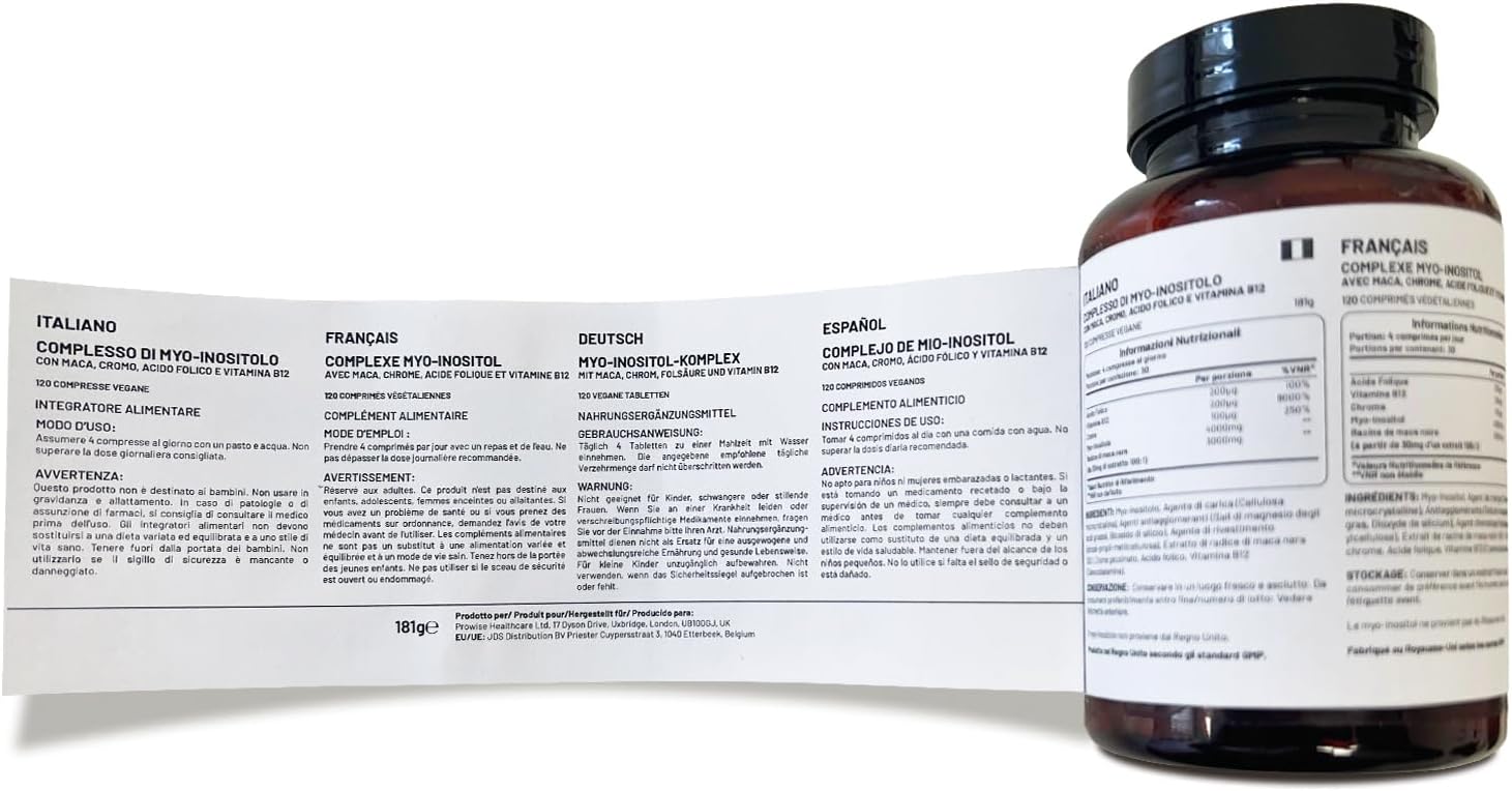 Myo-Inositol Complex 120 Vegan Tablets 7000mg per serving with Black Maca Root, Chromium, Folic Acid, and Vitamin B12 | Hormonal Balance for Women| Premium Quality by Prowise