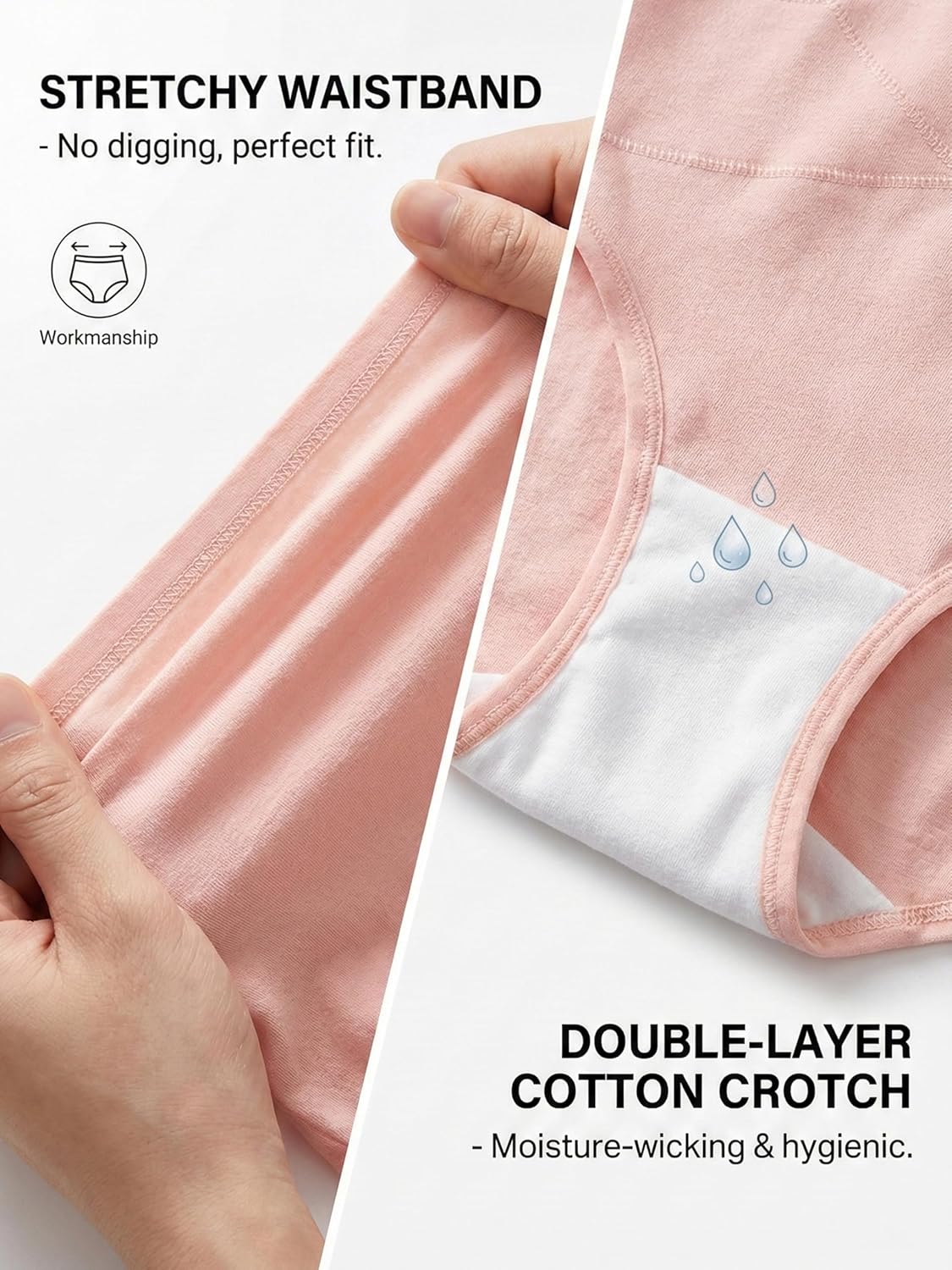 Each pack includes 4 pairs of high waisted cotton underwear.