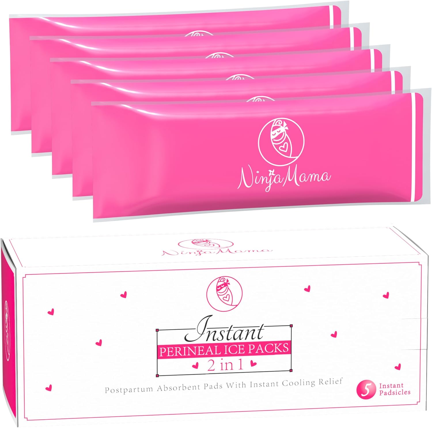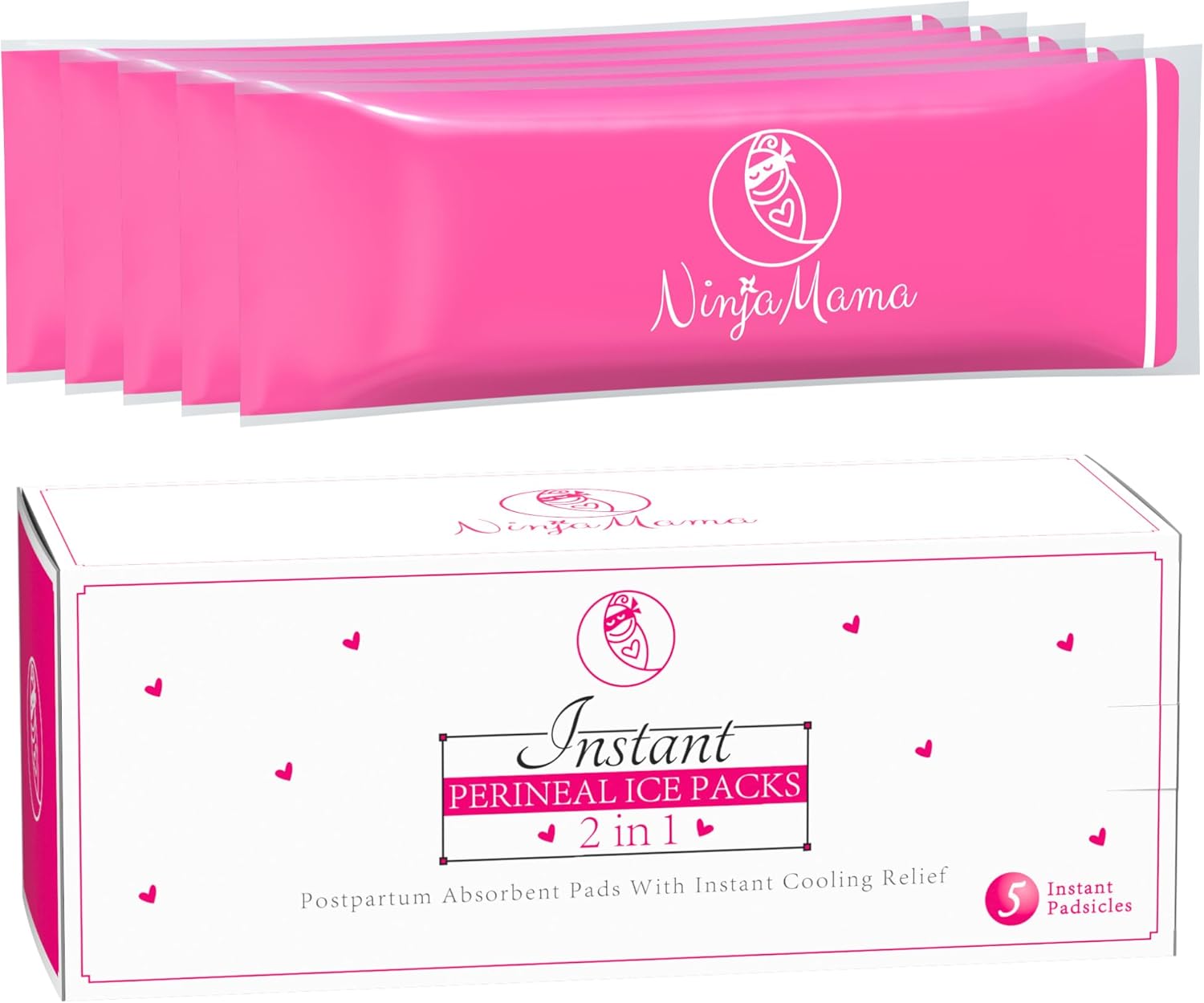 Ninja Mama Instant Perineal Cold Pack with Built in Pad. Soothing Relief for Postpartum perineal and Haemorrhoid swelling. Childbirth Recovery Care – Labour and Delivery Essentials. Pack of 5.