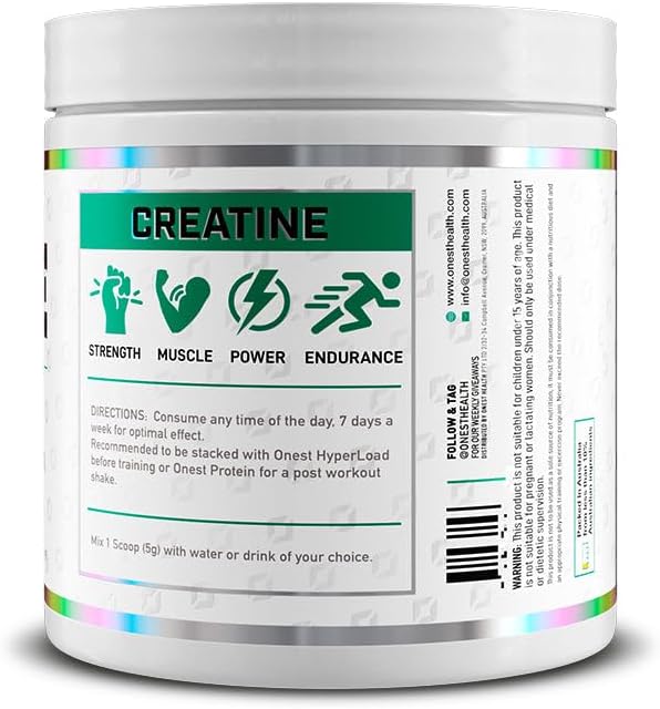 ONEST 150g Micronized Creatine Monohydrate Powder is designed to support muscle gain and enhance performance. Each serving provides 5g of unflavoured creatine, making it easy to mix with your favorite post-workout beverages. This gluten-free and GMO-free formula is suitable for both men and women looking to improve their workout results.