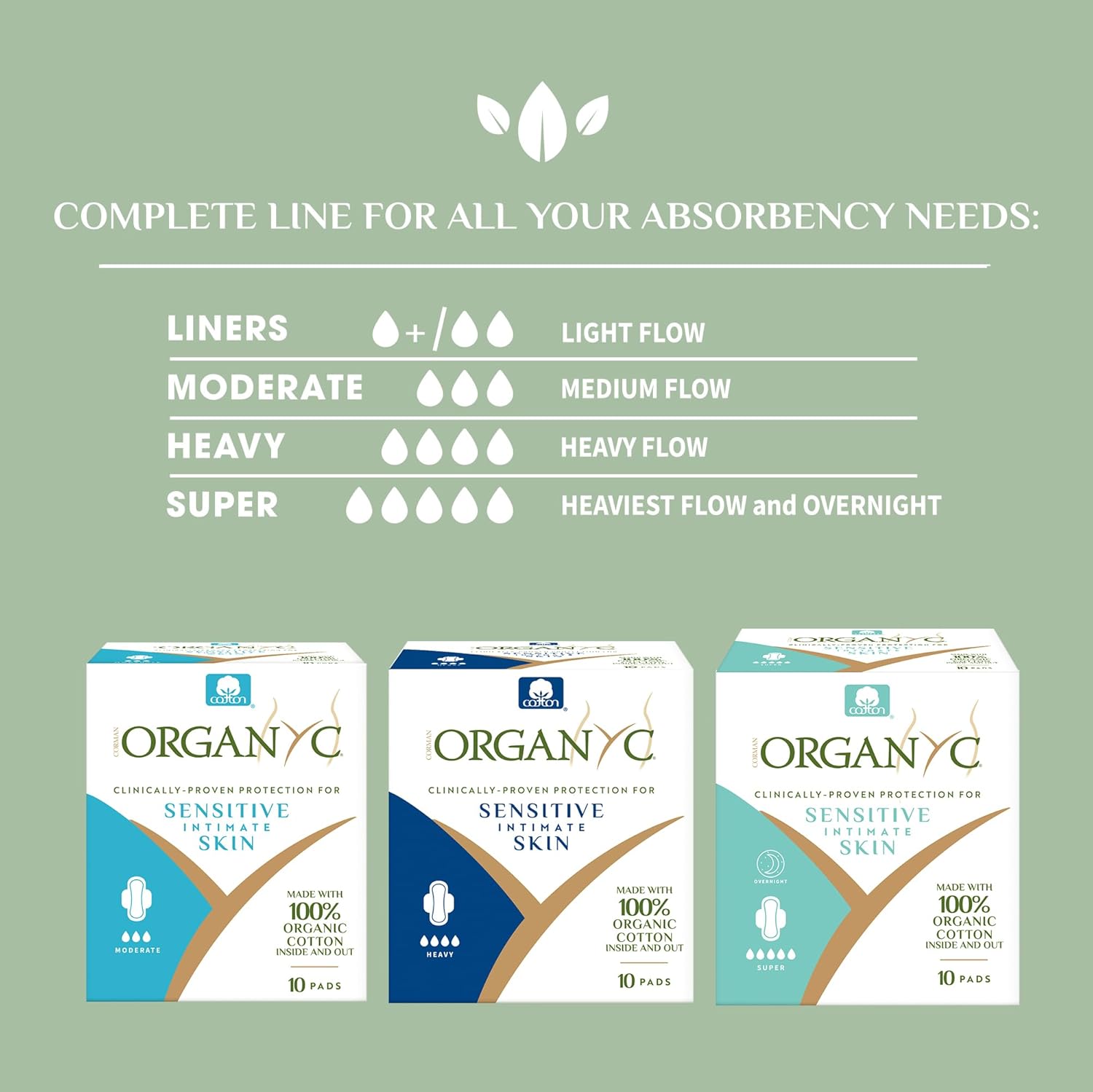Organyc Ultra Thin Pads – Moderate Wings, 10 count