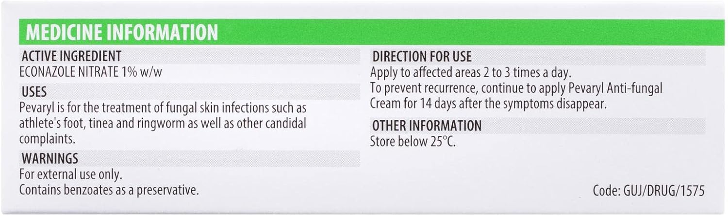 Pevaryl Anti-Fungal Cream is designed to treat fungal infections effectively. This 20g cream is suitable for various skin conditions and is easy to apply. Here are some key features: