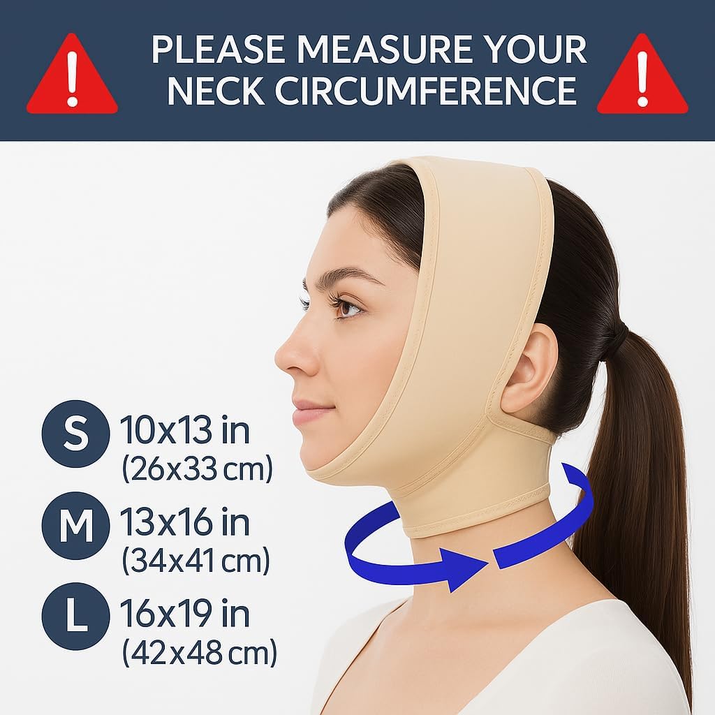 Post Surgical Chin Strap Bandage for Women – Neck and Chin Compression Garment Wrap – Face Slimmer, Jowl Tightening (S) (Beige, M)