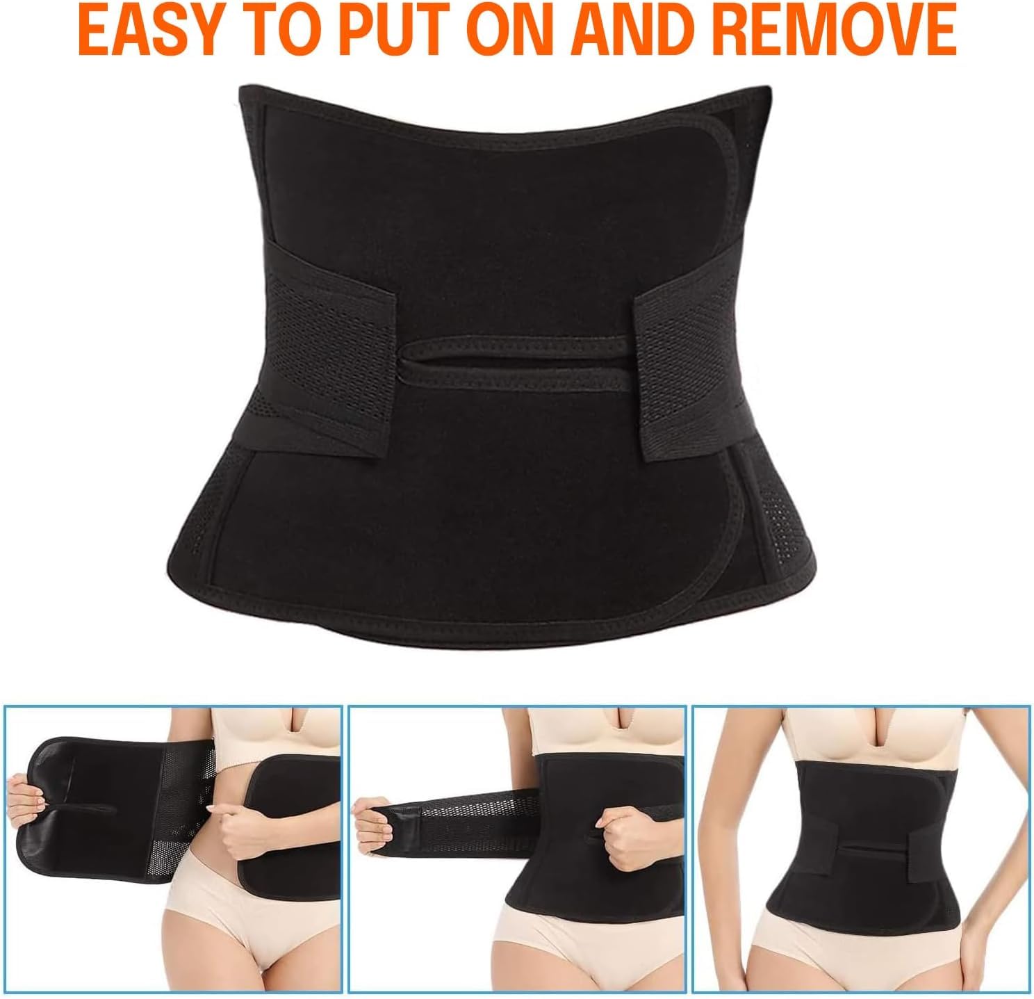 The postpartum belly band is available in three sizes: S/M (waist 29"-35"), L (waist 35"-41.3"), and XL (waist 40"-46.1").