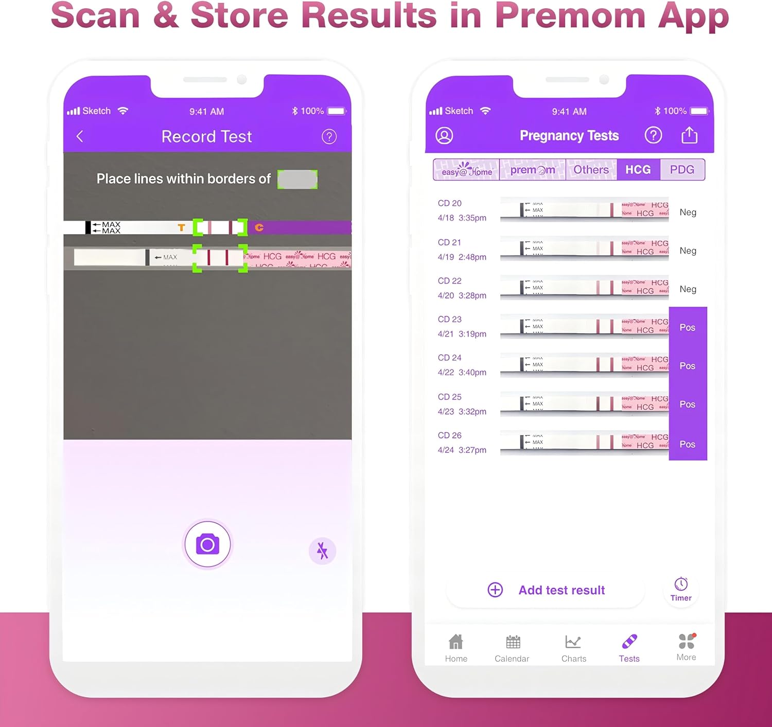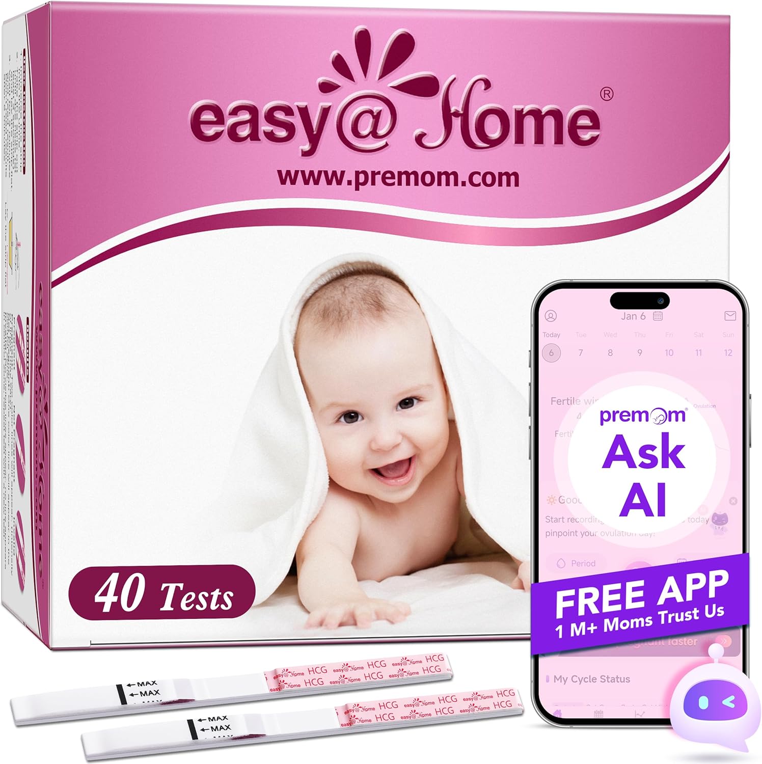 Pregnancy Test Strips Early Detection: Easy@Home 40 x HCG Strips 10mIU/mL, Accurate Early Pregnancy Tests, Sensitive HCG Pregnancy Test Strips with Smart APP, Home Fertility Testing Kit 40 Packs