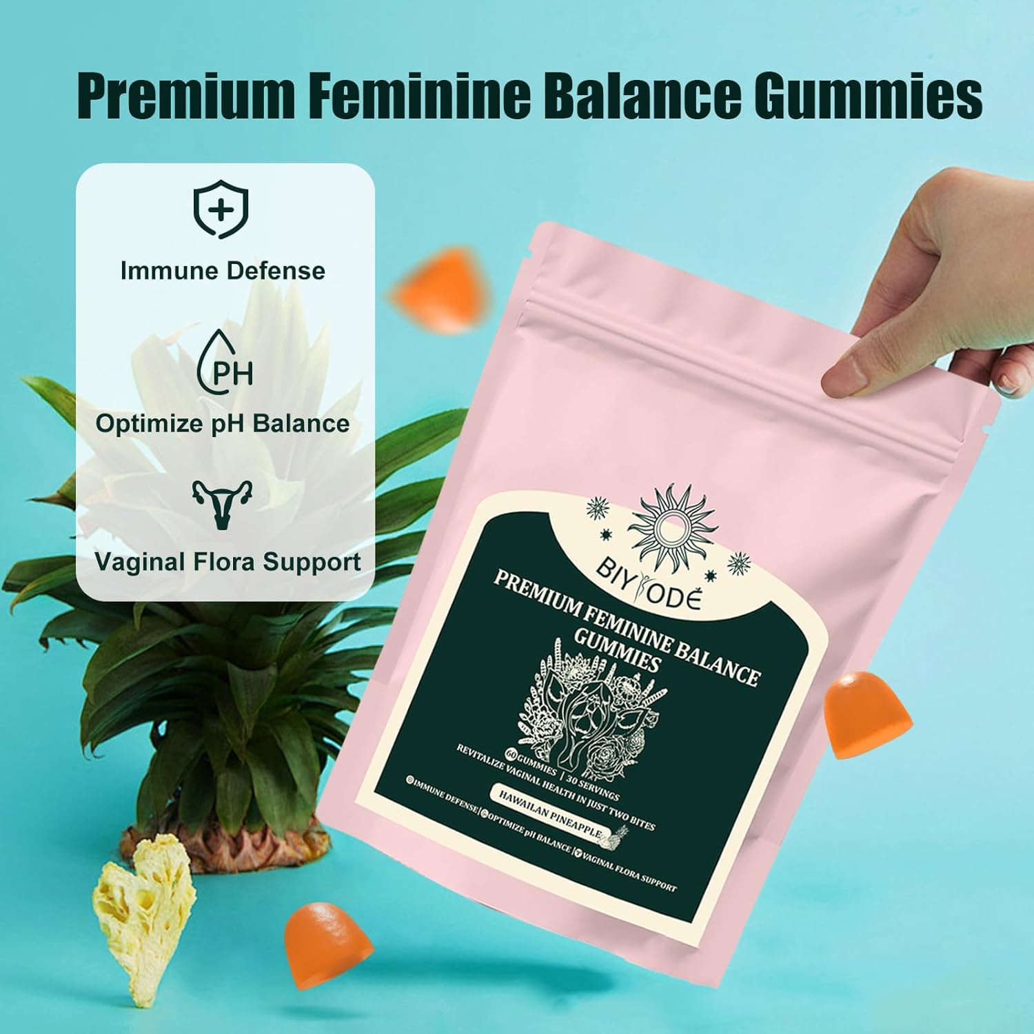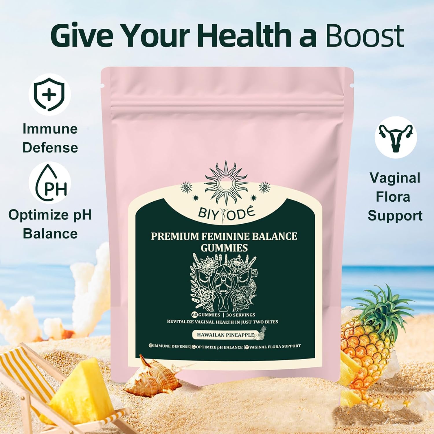 Our Premium Feminine Balance Gummies are designed specifically for women, providing targeted support for vaginal pH balance and healthy flora. Enriched with Vitamin C, these gummies also help bolster your immune system, ensuring you feel energized and resilient. With a delightful Hawaiian pineapple flavor, they are a tasty addition to your daily routine. Simply take two gummies a day for convenient health support without the hassle of traditional supplements.