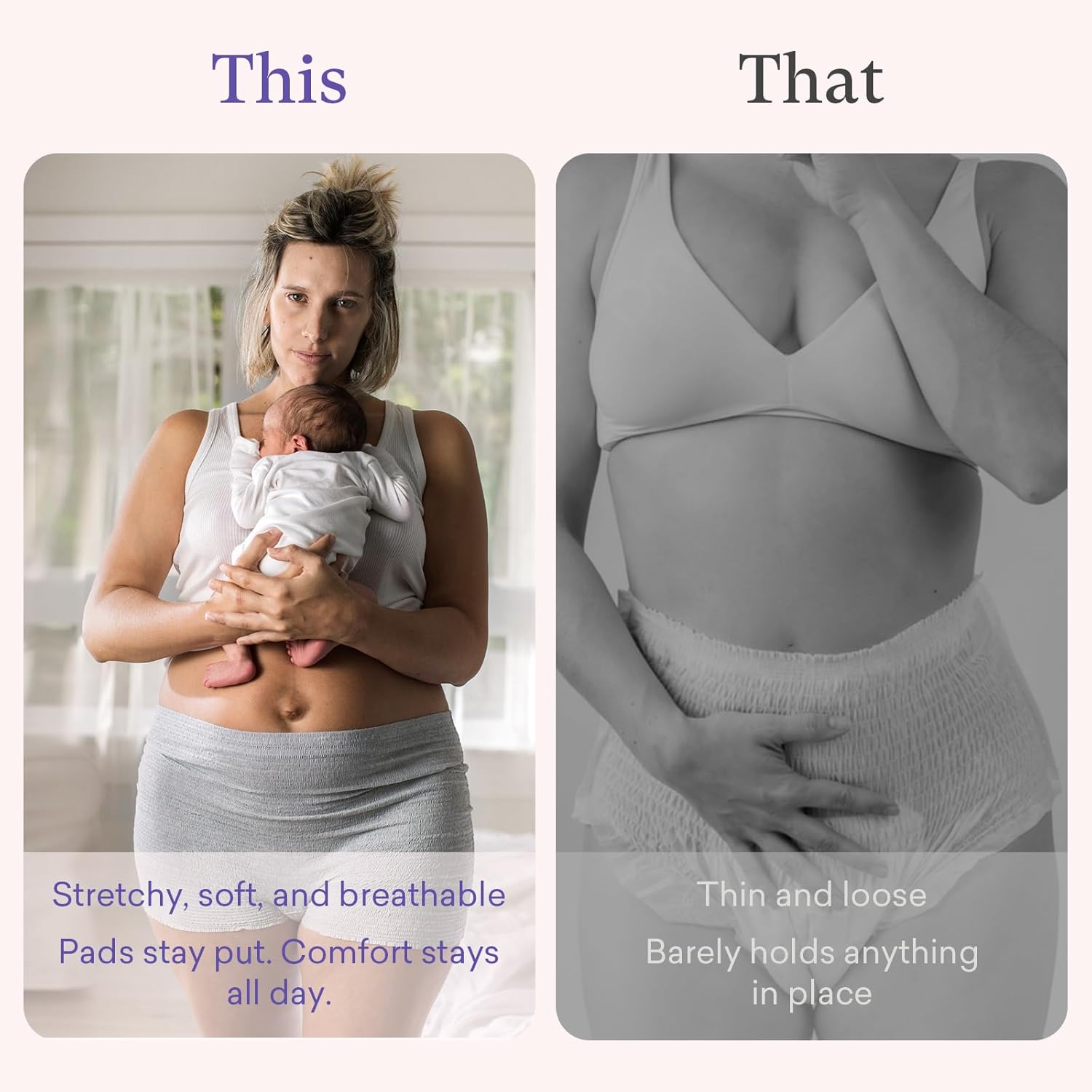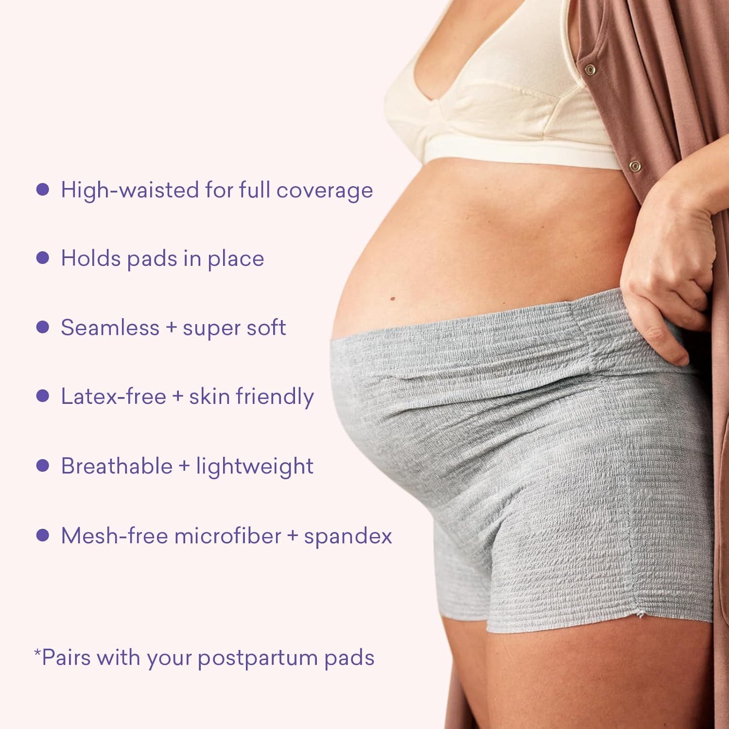 PurComfy 10 Pcs Postpartum Underwear for Women, High Waisted Disposable Boyshort Underwear for Mom Postpartum, Seamless Under Wear for Postpartum Essentials, Waist 28″- 42″ Stretched, Grey