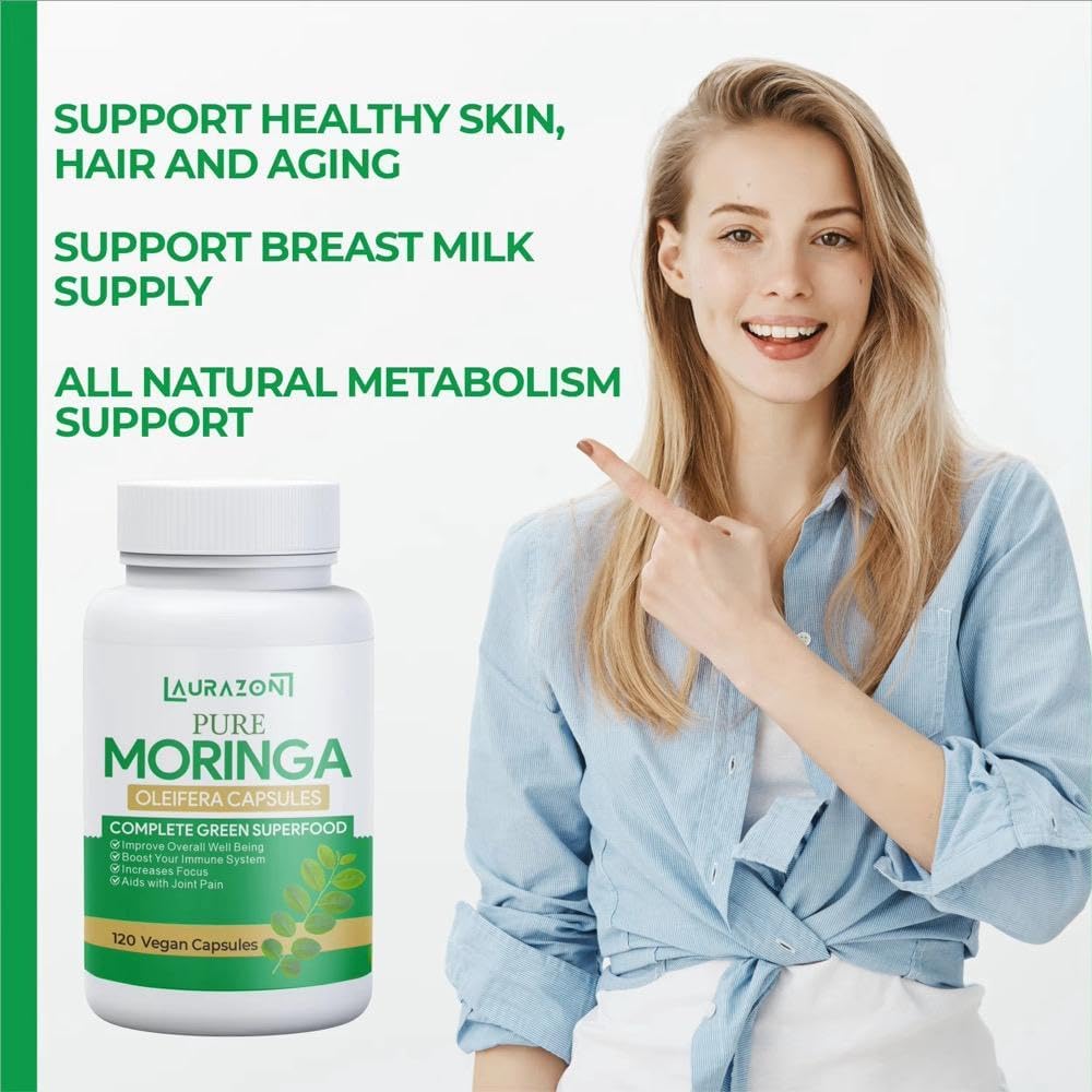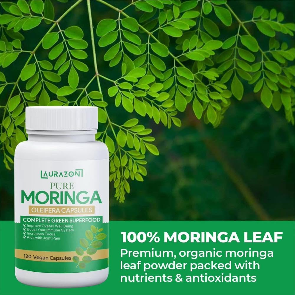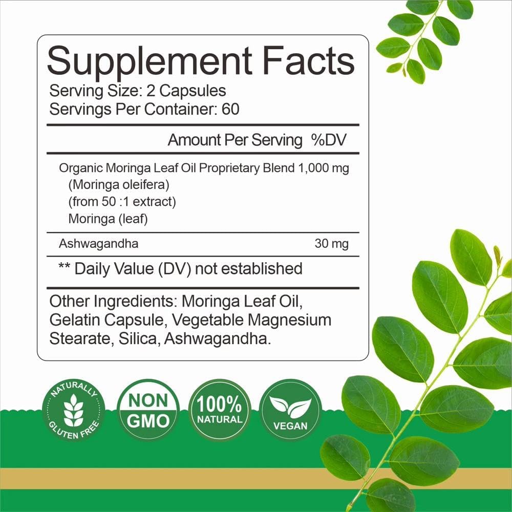 Pure Organic Moringa Oleifera with Ashwagandha Capsules, 1000mg High Strength, Vegan Plant Based, Non-GMO, 120 capsules