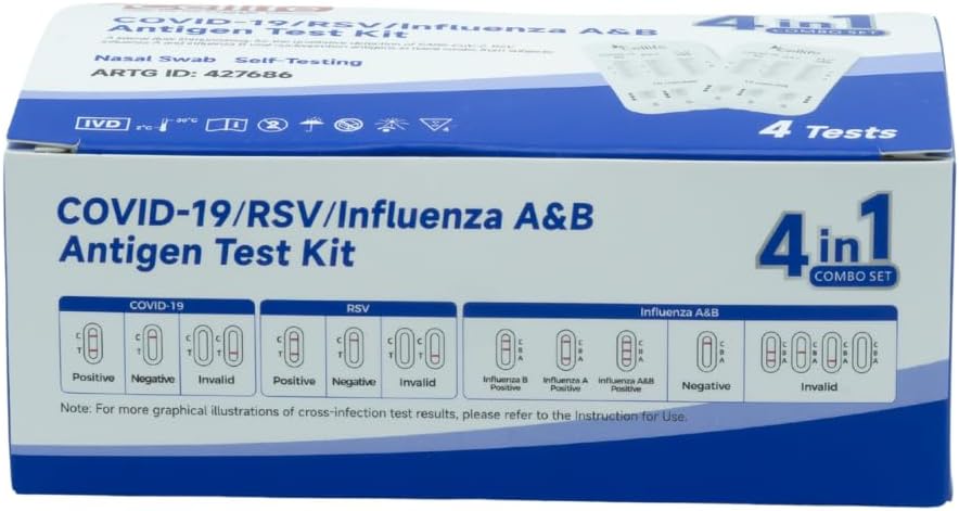 Rapid Antigen Test (RAT) 4 in 1 Kit – Tests for COVID-19, RSV, Flu/Influenza A&B (4 pack)