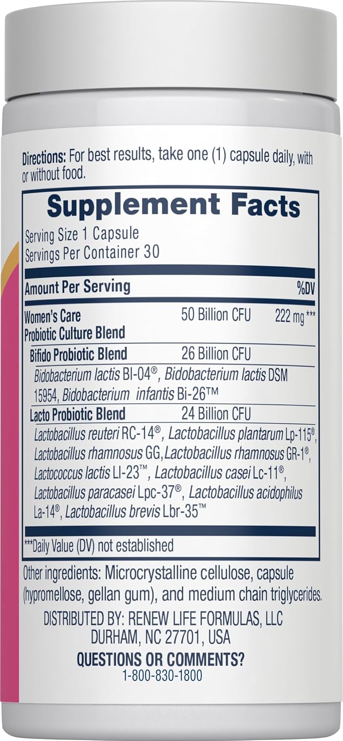 Renew Life Women’s Probiotic – Ultimate Flora Women’s Vaginal Probiotic Supplement – Gluten, Dairy & Soy Free – 50 Billion CFU – 30 Vegetarian Capsules