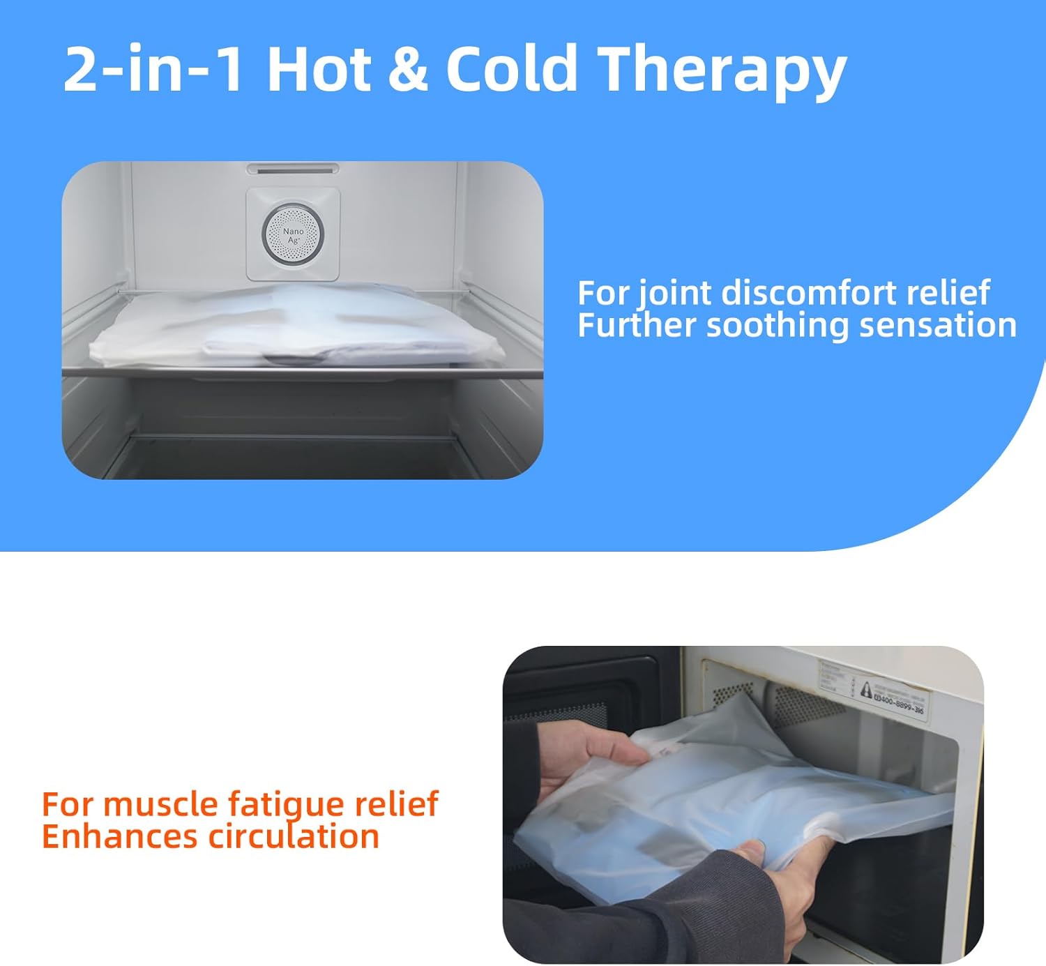 The Reusable Hot & Cold Knee Ice Pack Wrap is designed for effective pain relief and recovery. This versatile wrap can be used for various conditions, including arthritis, sports injuries, swelling, and post-surgery recovery. Its adjustable compression fit allows it to be worn on either the left or right knee, ensuring a comfortable and secure fit.