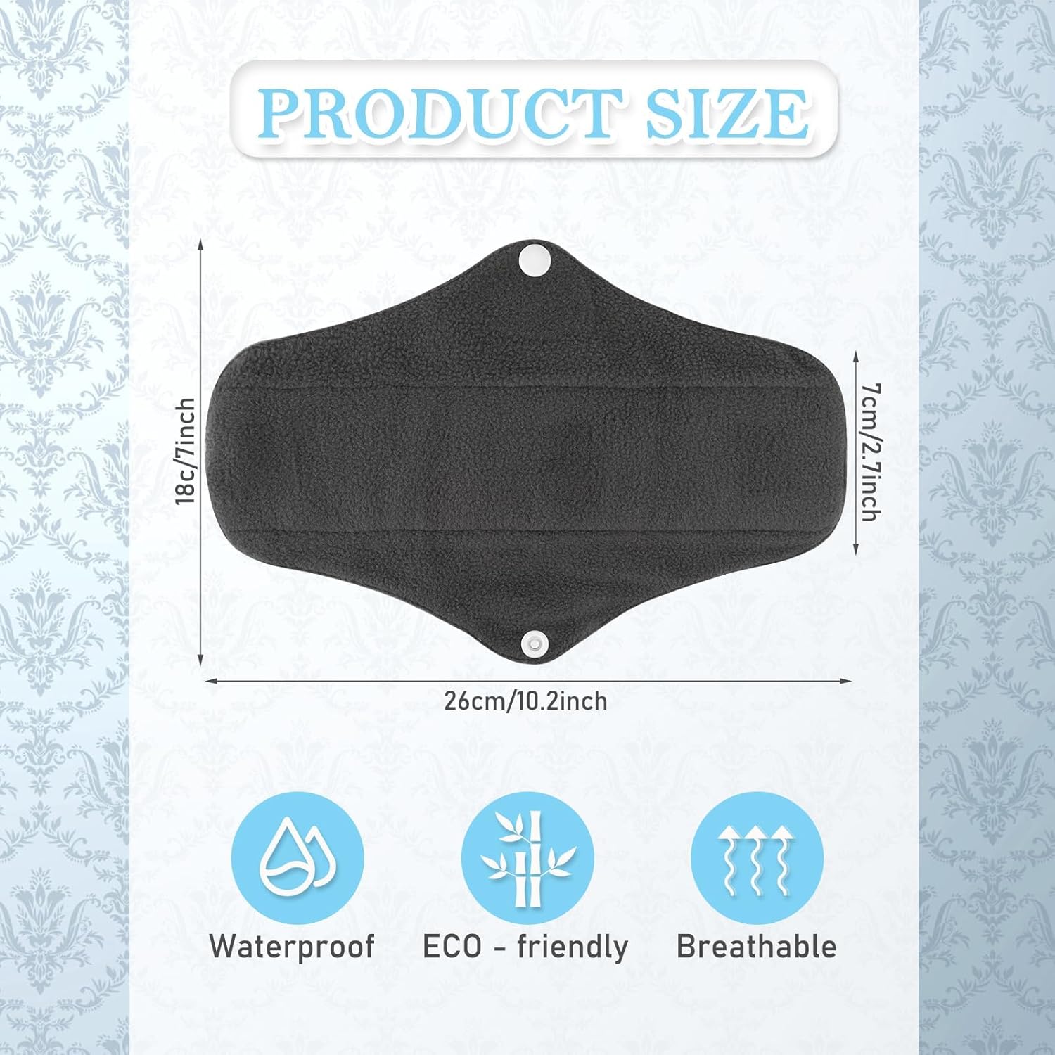 These reusable menstrual pads are designed specifically for heavy flow, making them a practical choice for women seeking comfort and protection. Made from bamboo charcoal fiber and ultrafine fiber, they measure 10x7 inches, providing ample coverage. The set includes seven pads and a wet bag for easy storage and transport.