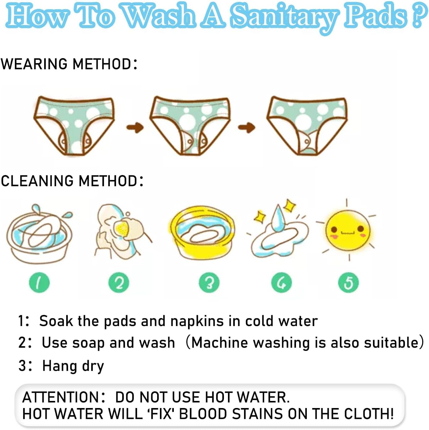 Why choose these cloth pads? They are eco-friendly, as they can be washed and reused for 3-5 years, reducing waste. Additionally, they are free from bleach and other harmful chemicals, ensuring a healthier option for your body. The soft bamboo material enhances comfort, while the leak-proof inner layer provides safety during use.