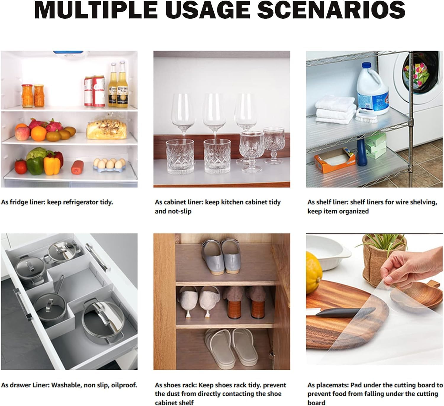 Shelf Liner Drawer Liner Cabinet Liner Fridge Liners Non Adhesive Non-Slip Washable Cupboard Pad for Kitchen Clear Refrigerator Mat