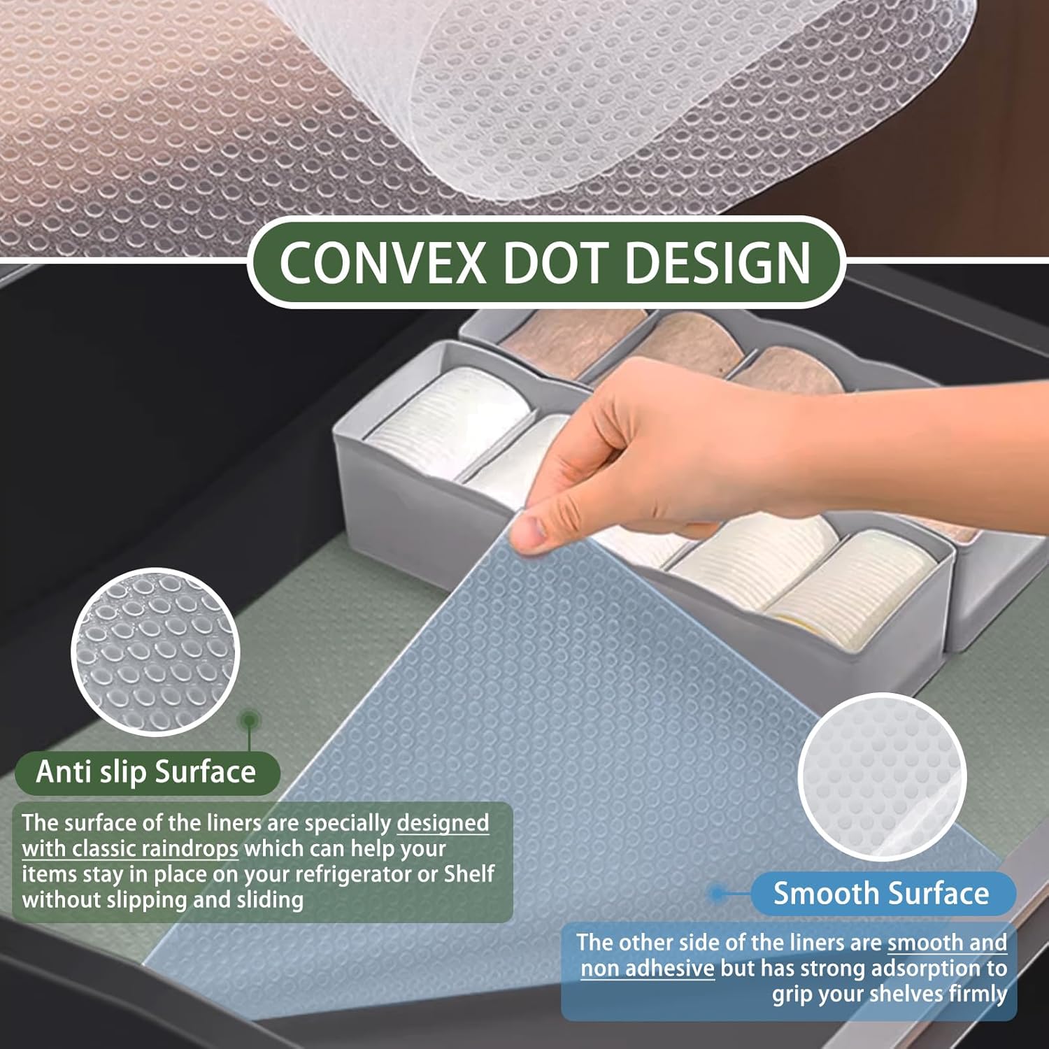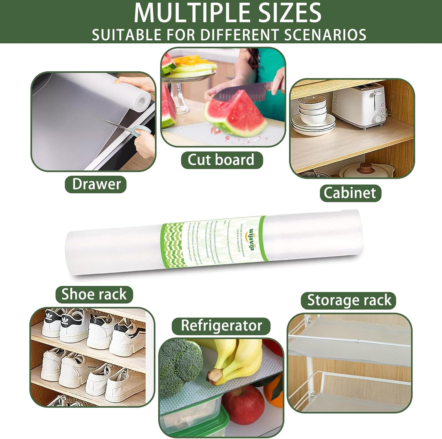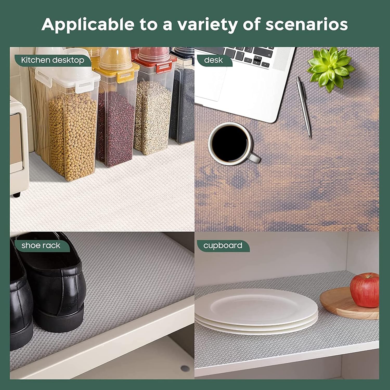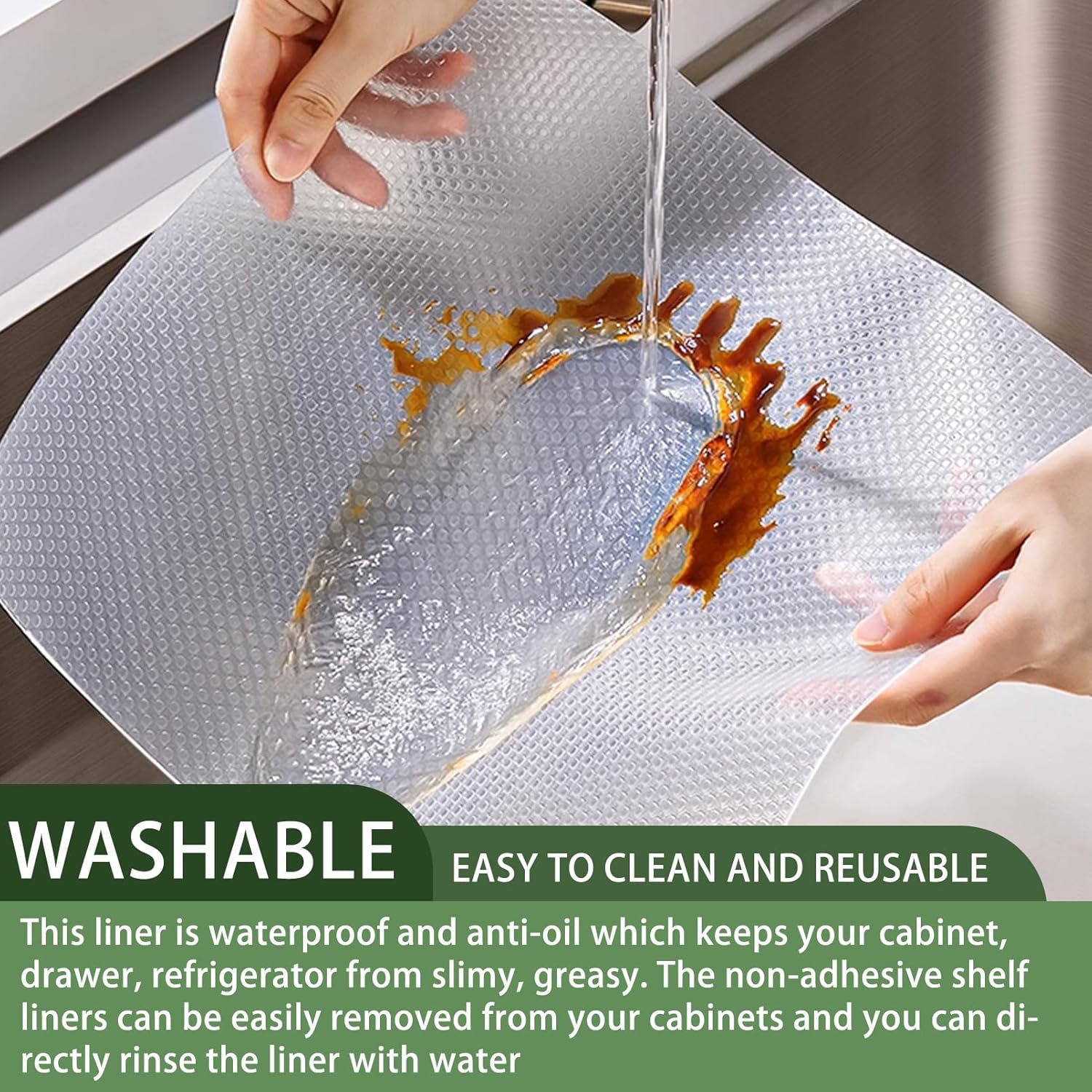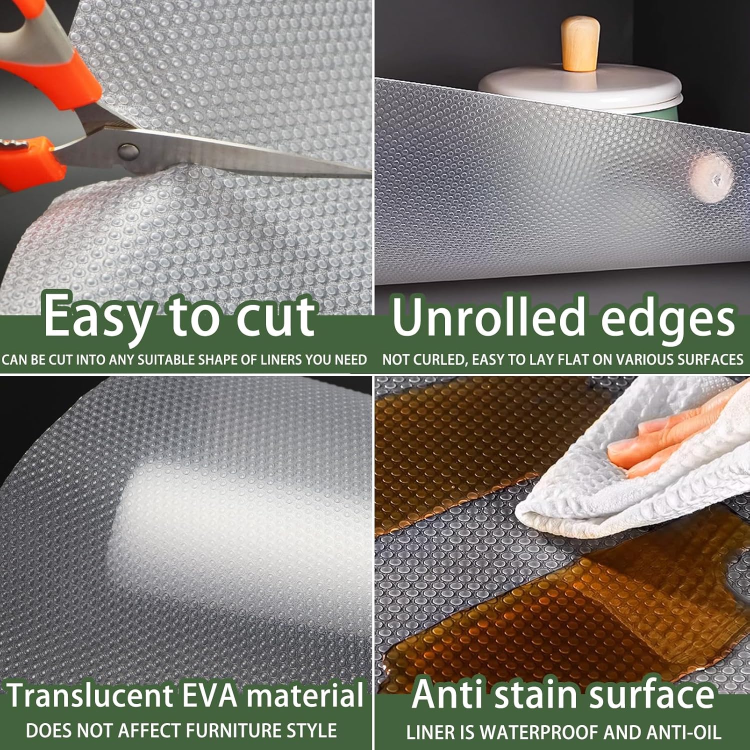 The Shelf Liner Non Adhesive Cabinet Liners are designed to protect your kitchen and pantry surfaces while adding a touch of practicality. Made from washable EVA plastic, these drawer liners are easy to clean and maintain. Measuring 60 cm by 500 cm, they can fit various cabinet sizes and configurations. Ideal for use in kitchens, pantries, and sinks, they help keep your items in place and prevent slipping.