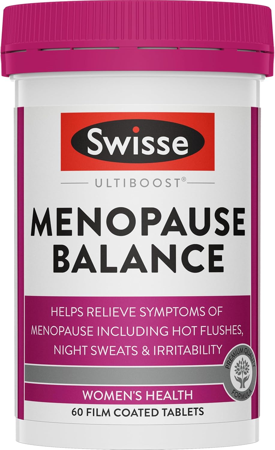 Swisse Ultiboost Menopause Balance is designed to support women during menopause. This supplement features black cohosh, which may help alleviate common symptoms like hot flushes and night sweats. Additionally, it contains essential nutrients such as calcium and vitamin D, which are important for maintaining healthy teeth and bones. This carefully crafted formula aims to promote overall health and wellbeing during this significant life stage.