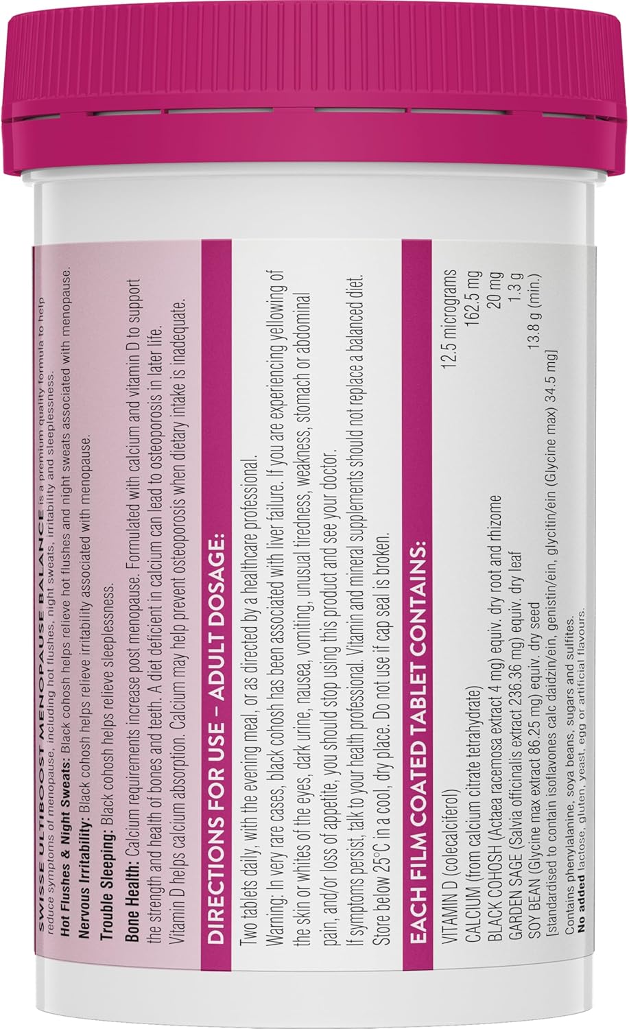 Swisse Ultiboost Menopause Balance – Helps Relieve Symptoms Including Hot Flushes & Night Sweats – 60 Tablets