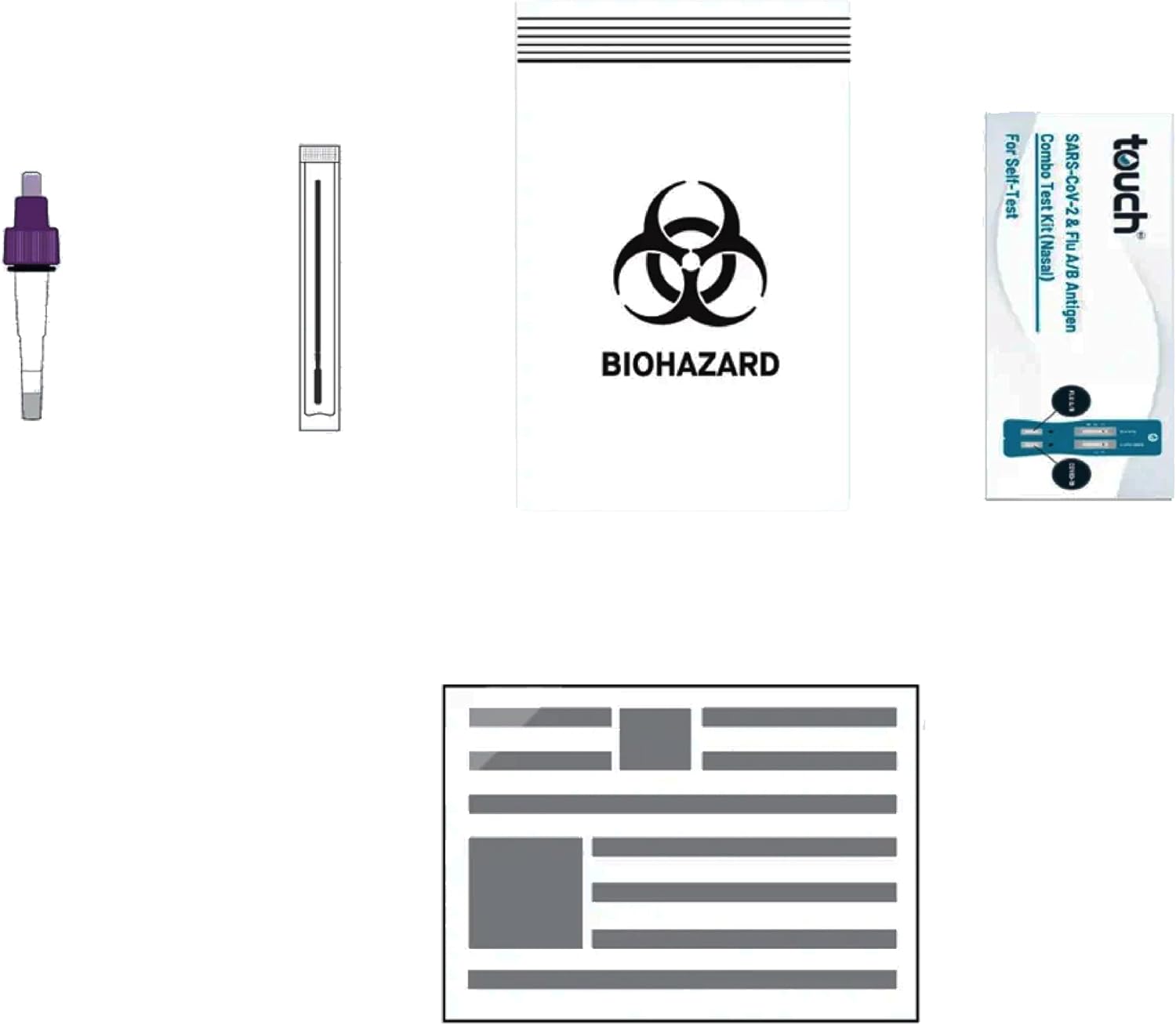 The TOUCHBIO 2 PACK COVID-19 & Flu A/B Rapid Antigen Combo Test is designed for both home and professional use, providing accurate results in just minutes. This product is compact, with package dimensions of 15.7 x 6.6 x 3.8 cm and a weight of 50 grams, making it easy to store and transport.