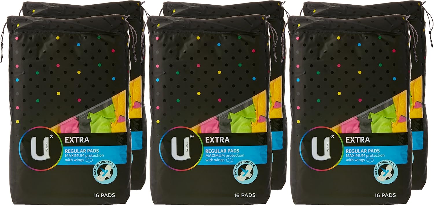 U by Kotex Extra Pads Regular with Wings 96 Count (6 x 16 Pack) – Packaging May Vary