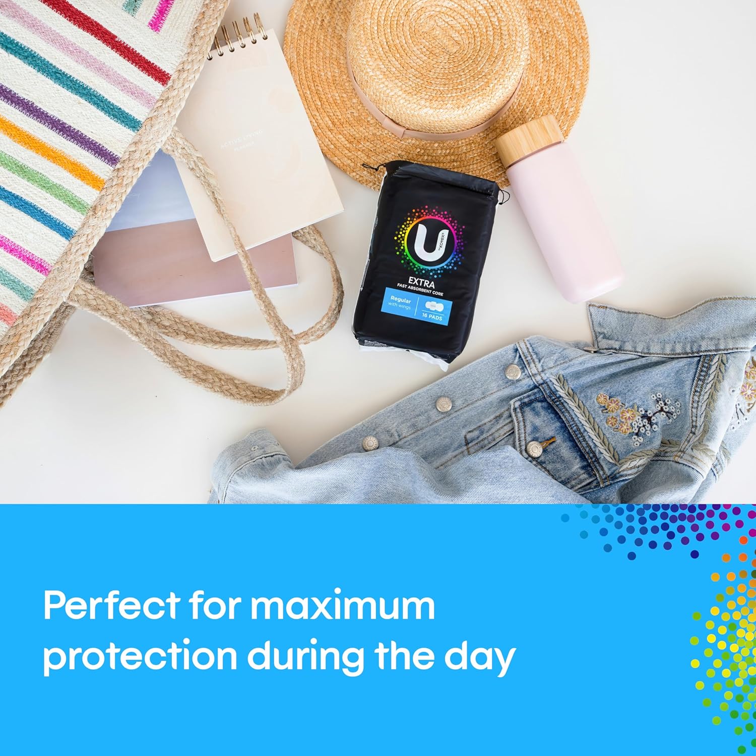 U by Kotex Regular Extra pads offer maximum period protection with a soft, flexible design and wings for extra security.