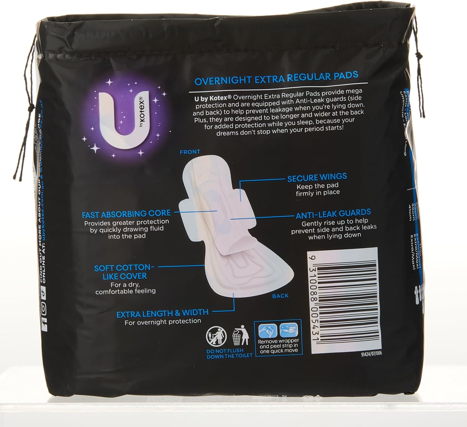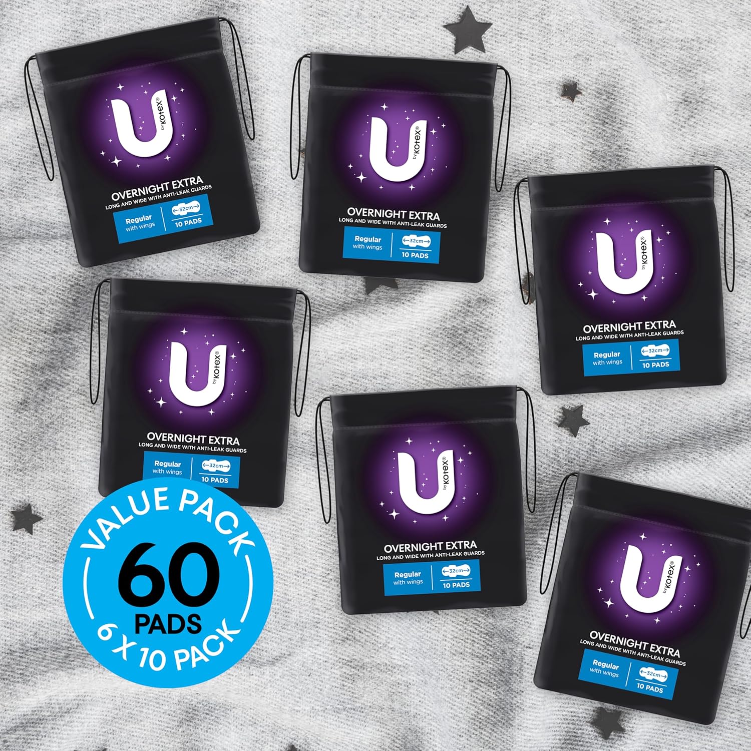 U BY KOTEX Maxi’s Extra Overnight Pads with Wings 60 Count (6 x 10 Pack) – Packaging May Vary