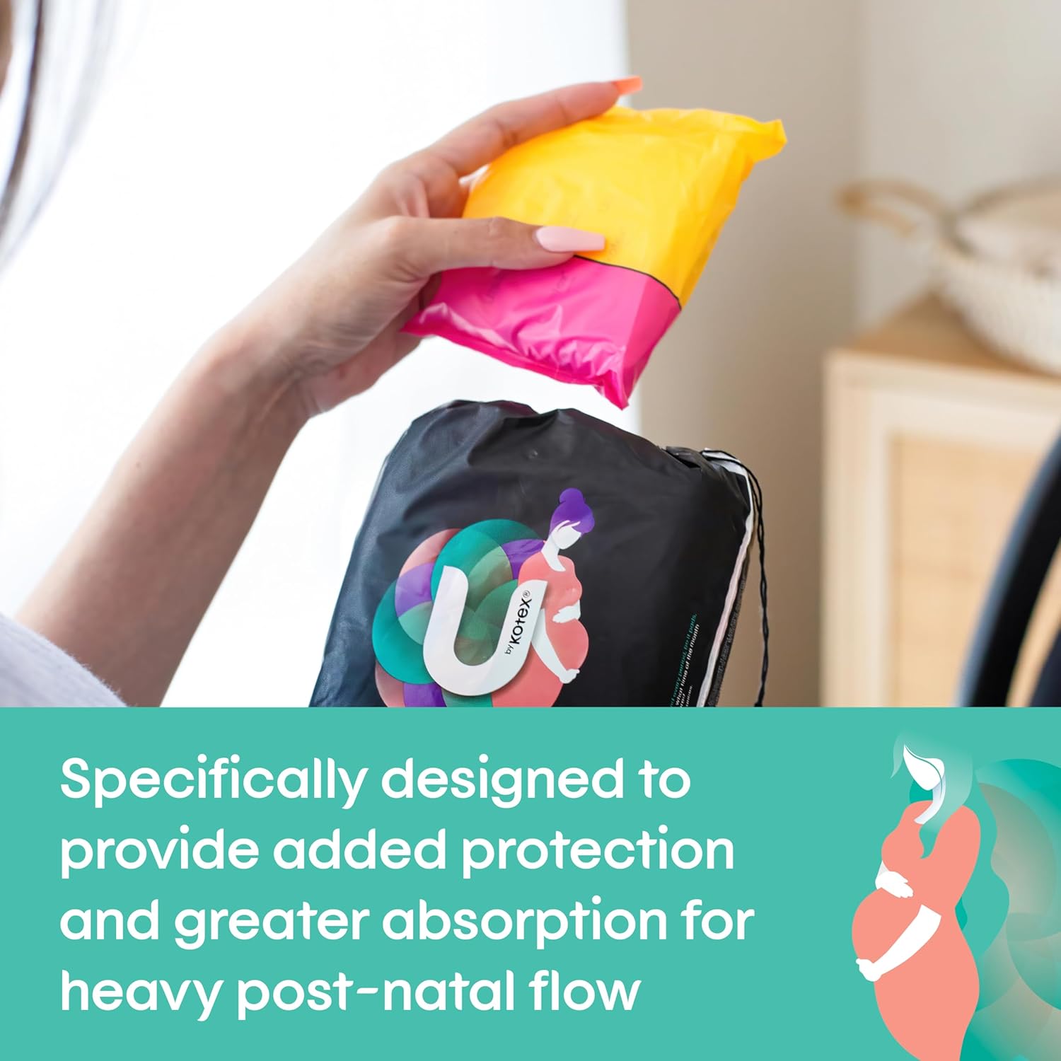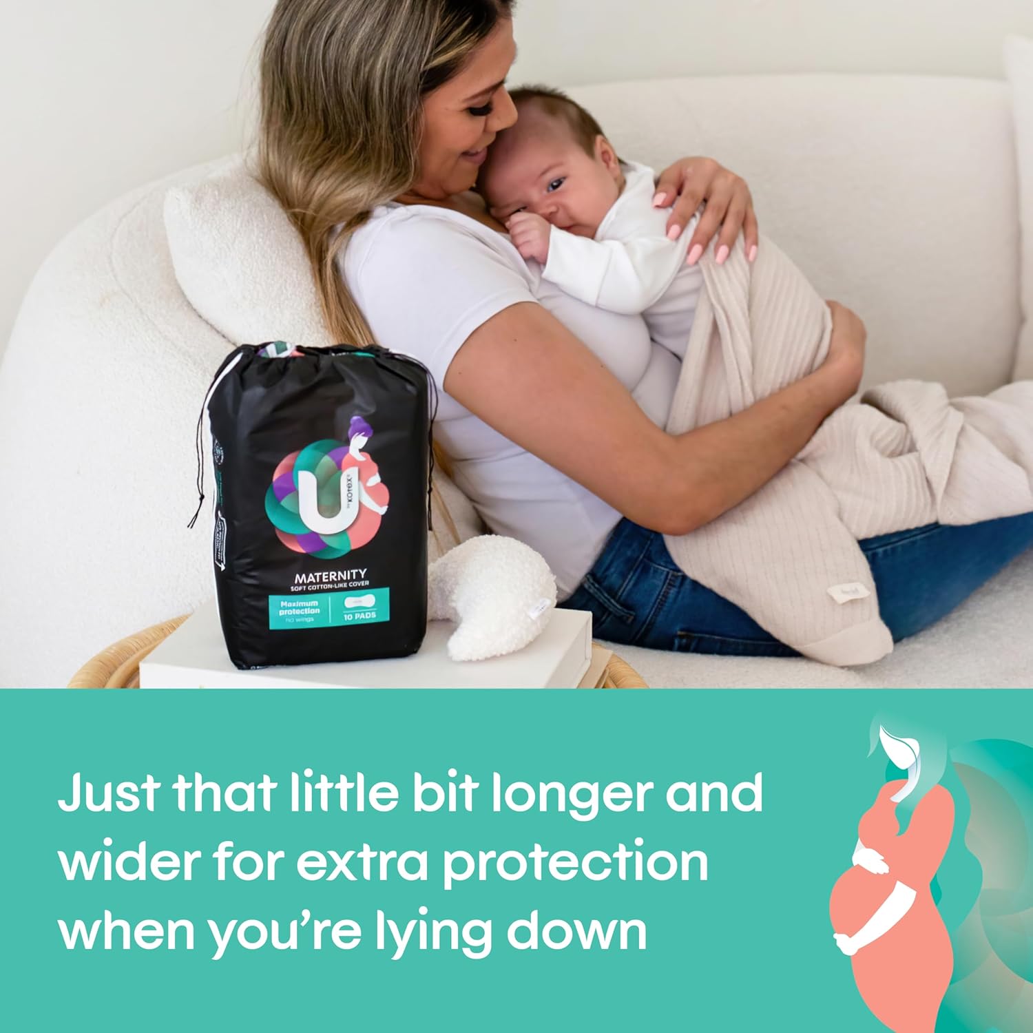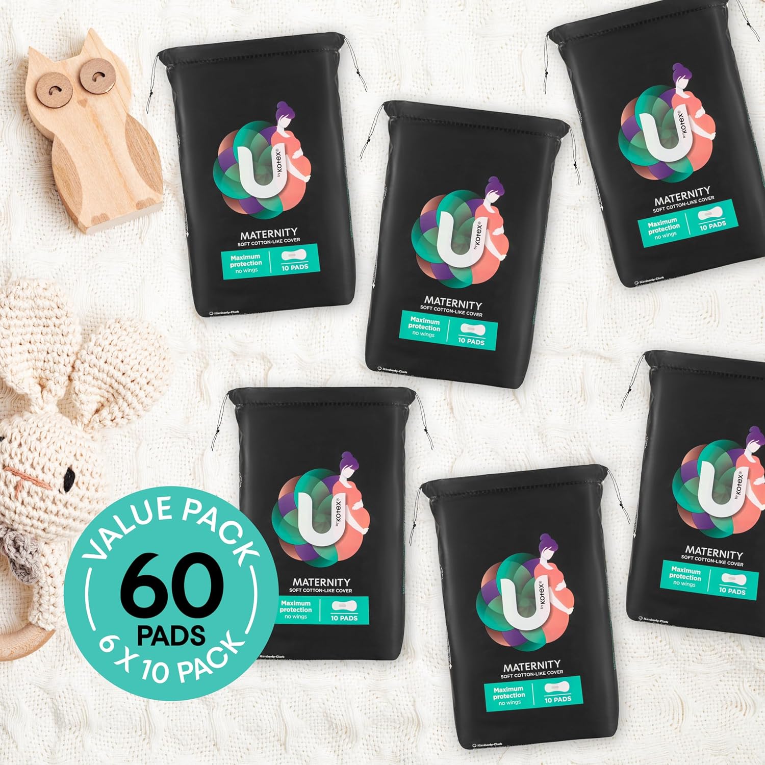 U BY KOTEX Maxi’s Maternity Pads no Wings 60 Count (6 x 10 Pack) – Packaging May Vary