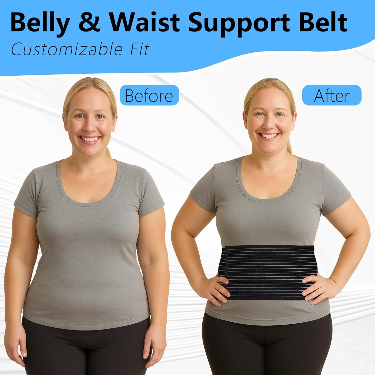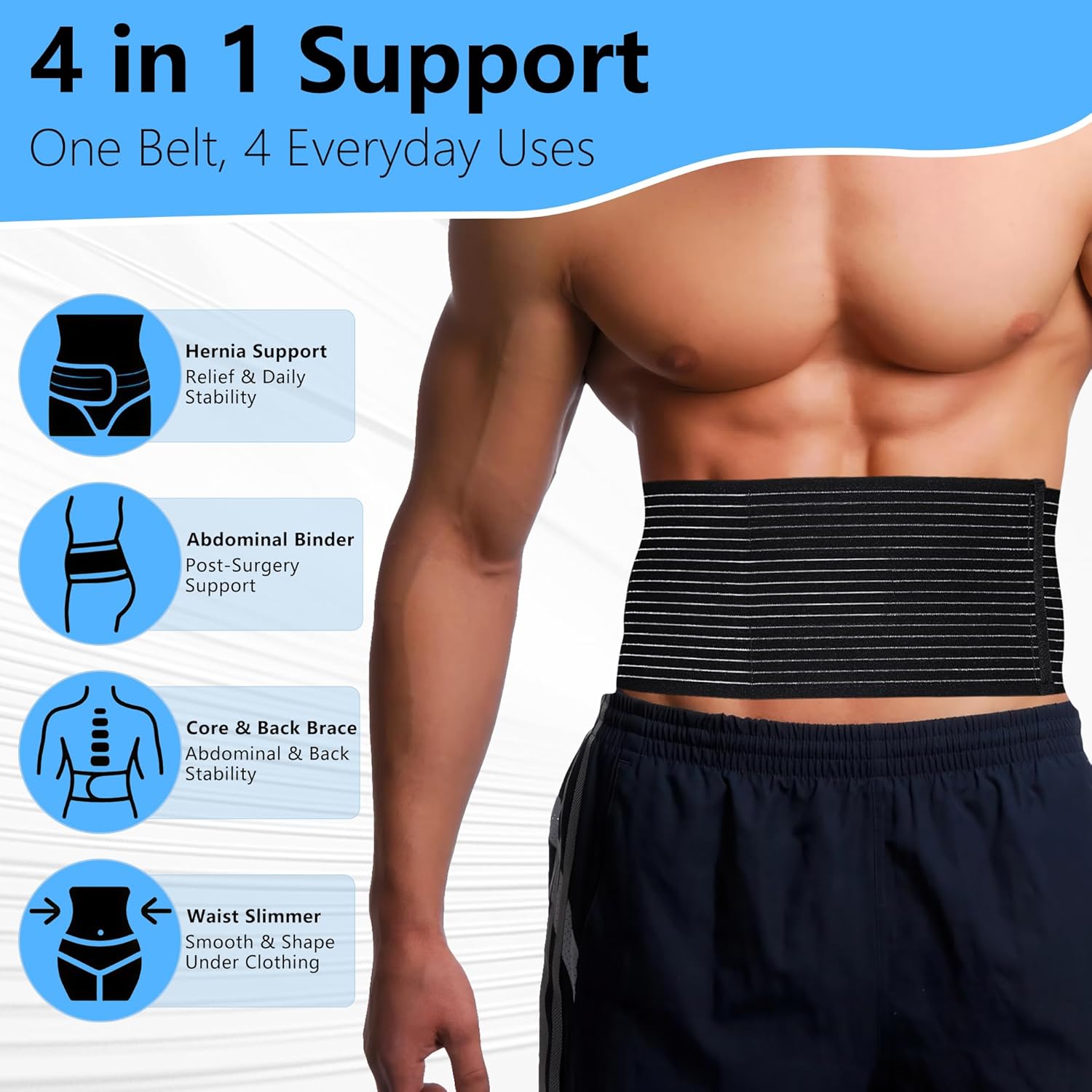 The Umbilical Hernia Belt is designed for both men and women, providing adjustable support for various types of hernias including belly button, ventral, incisional, and epigastric hernias. This abdominal binder features two compression pads that offer targeted support and comfort, making it suitable for post-surgery recovery. Its breathable material ensures comfort during extended wear.