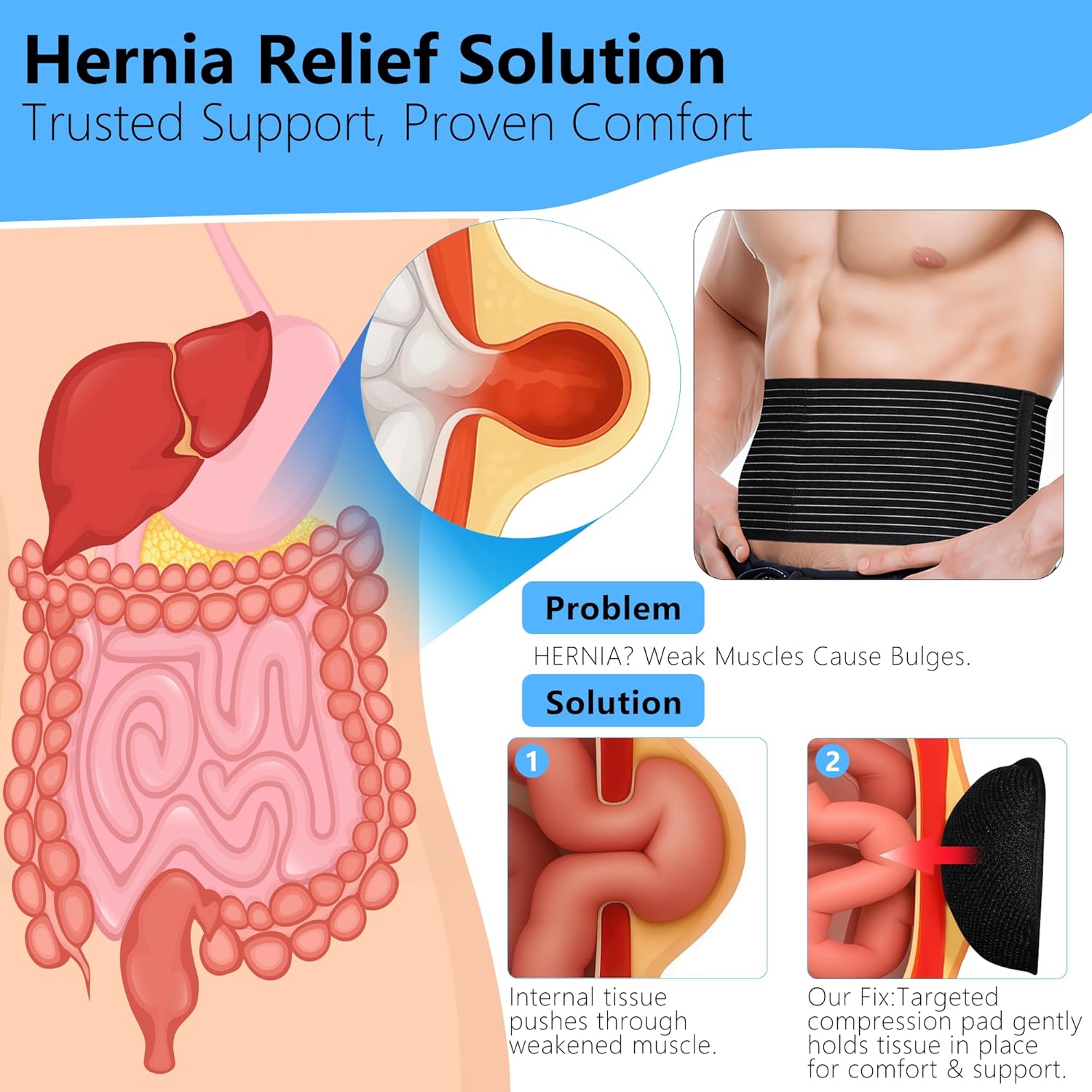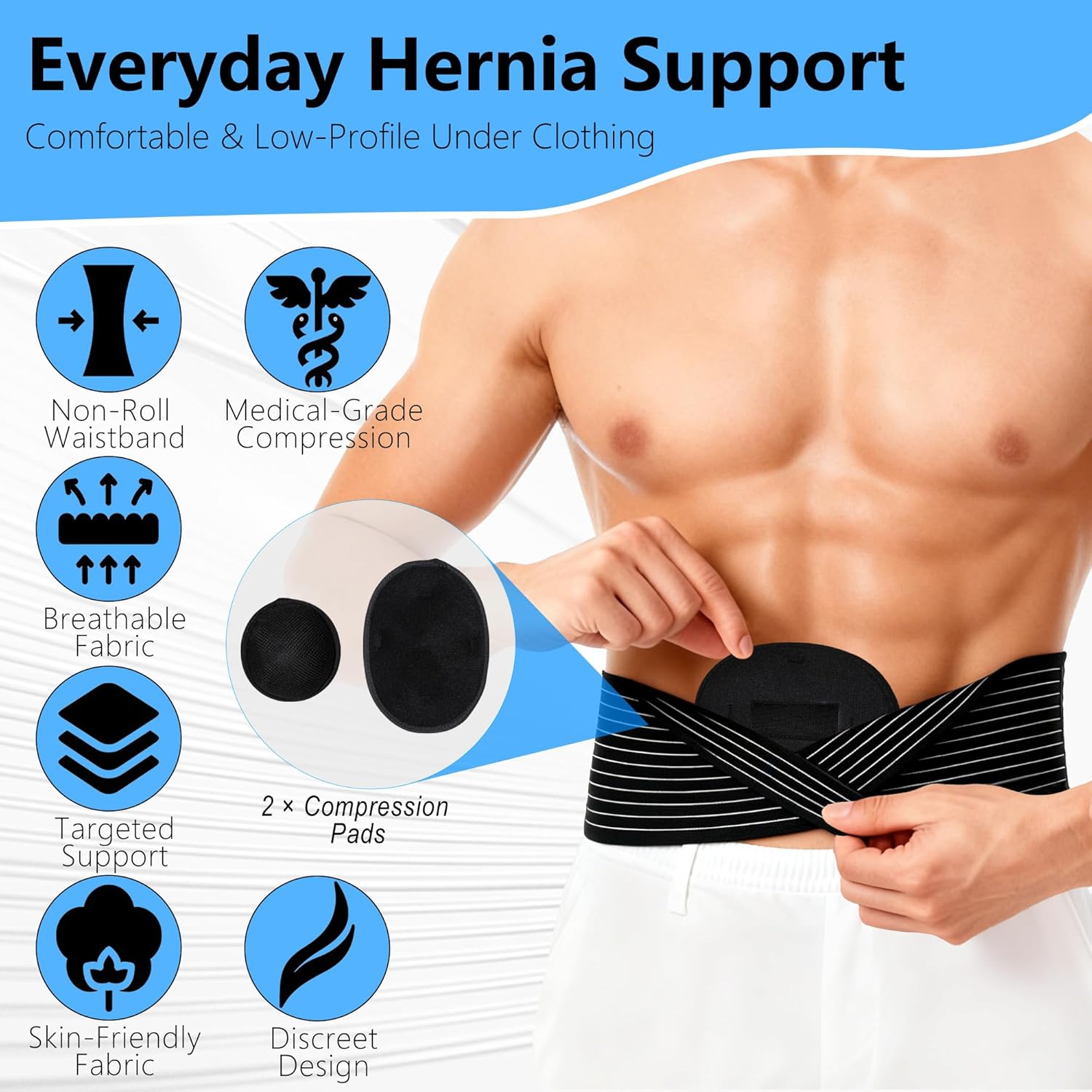 Umbilical Hernia Belt for Men & Women – Adjustable Abdominal Binder with 2 Compression Pads for Belly Button, Ventral, Incisional & Epigastric Hernias, Core Support & Post Surgery Recovery
