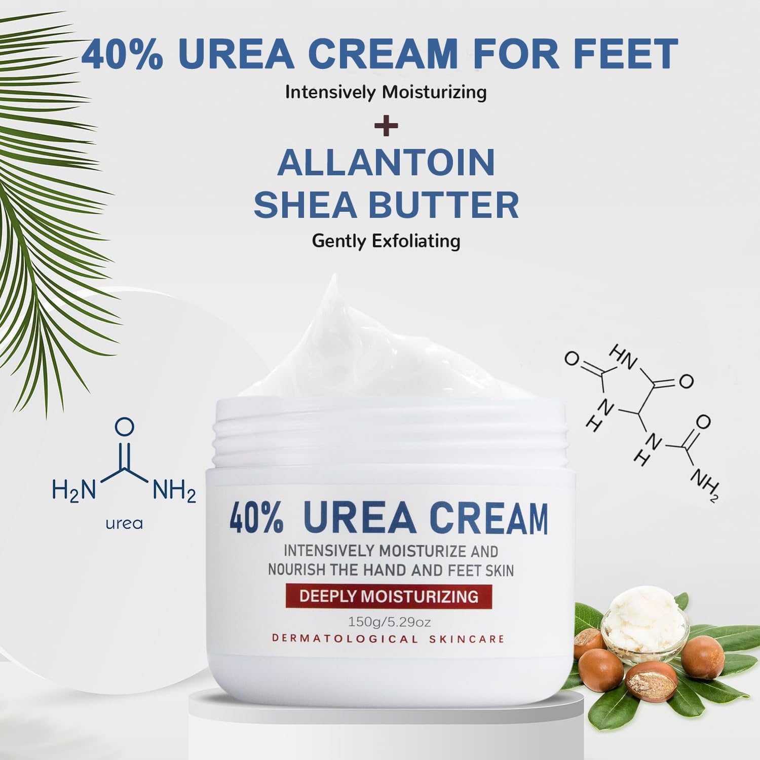 Urea Cream 40%, Keratolytic Foot Cream for Dry Cracked Heels, Feet, Knees, Elbows, Hands, Cuticle, Callus Remover, Skin Barrier Repair