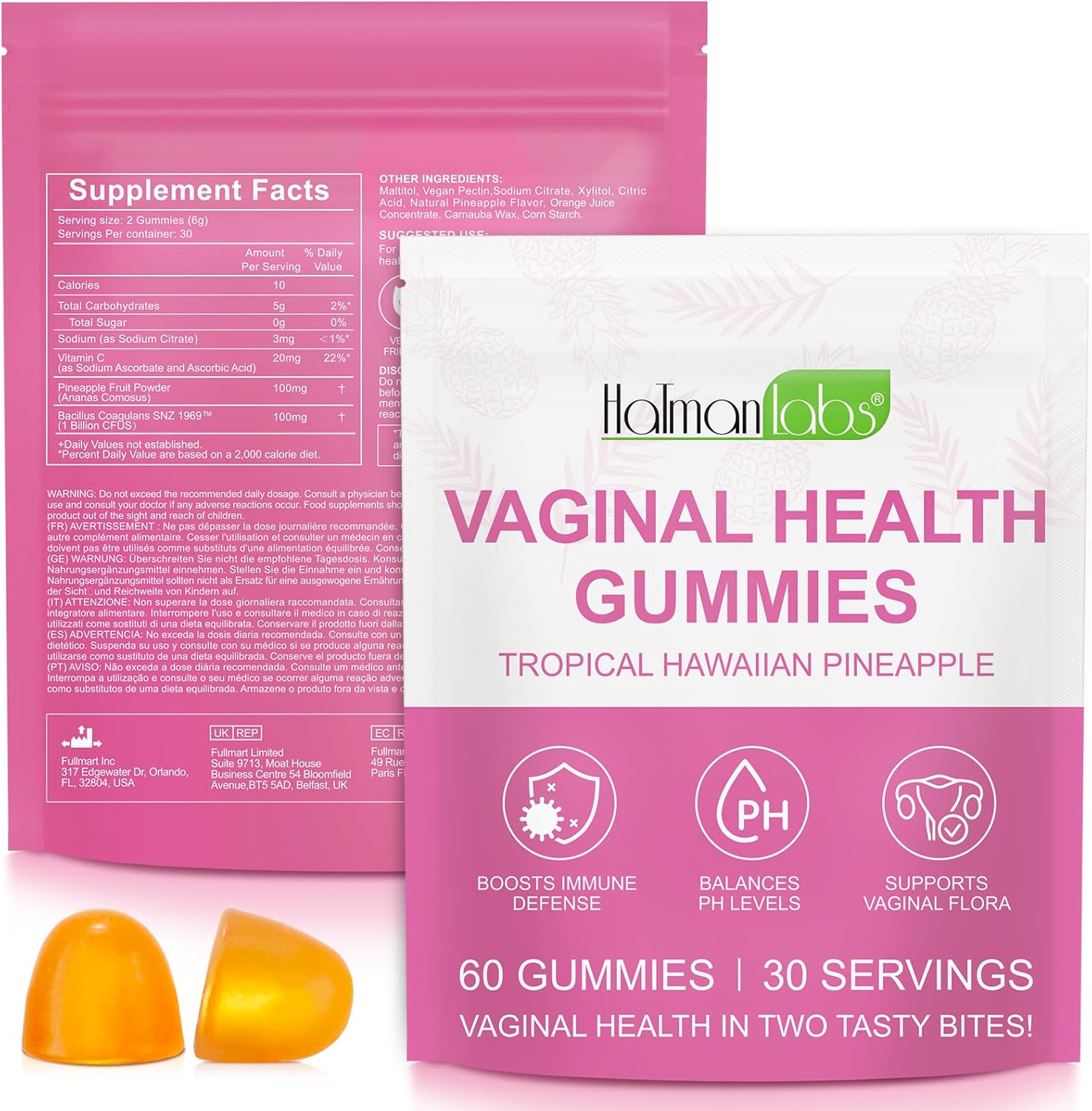 Vaginal Probiotic Gummies for Women | Plant-Based Formula with Vitamin C | Natural Pineapple Flavour | Sugar-Free, Vegan & Gluten-Free | 60 Gummies