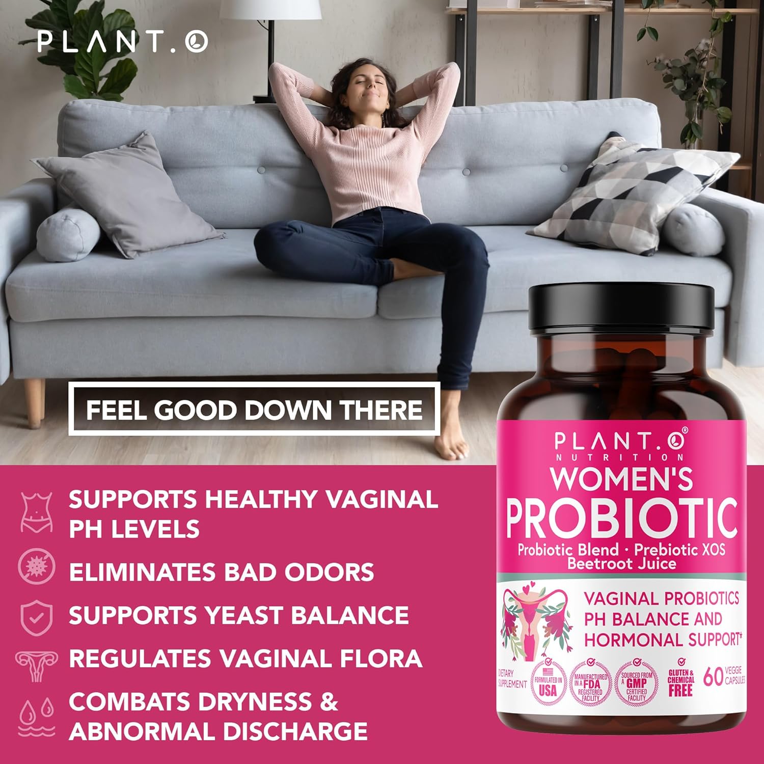 Vaginal Probiotics for Women with 4 Lactobacillus Strains Probiotic & Prebiotic Blend for pH Balance, Healthy Vaginal Odor & Vaginal Flora
