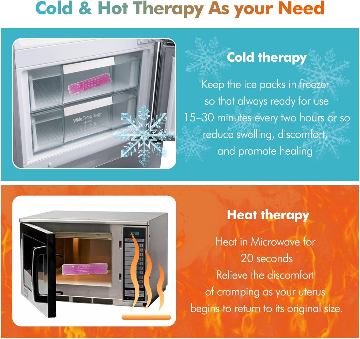 Vecozey 2 Perineal Cold Packs for Maternity Postpartum Care, Reusable Hot & Cold Ice Wraps with Washable Cotton Sleeves for Post Partum & Hemorrhoid Pain Relief, Cooling Pads for Women After Birth