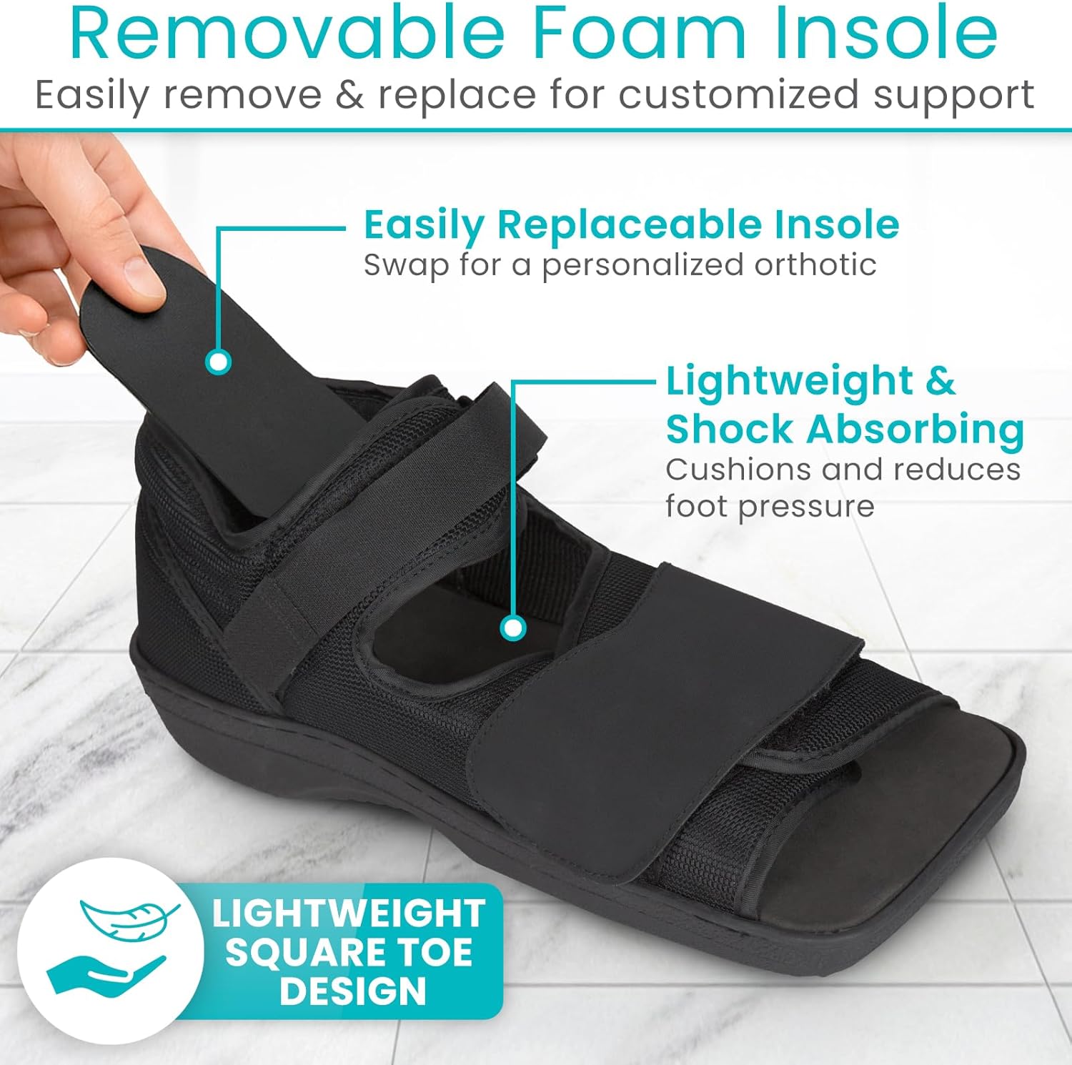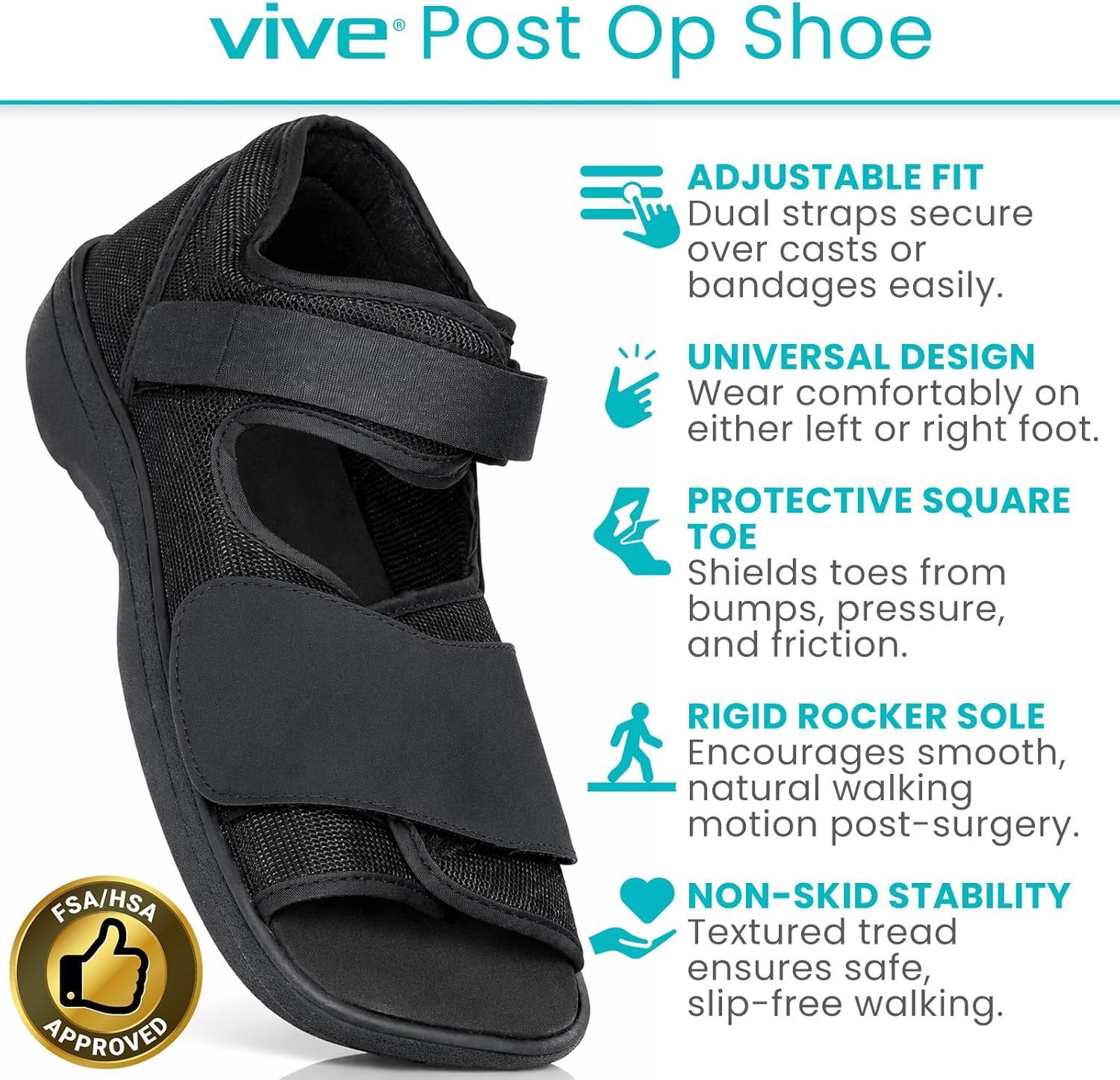 Vive Post Op Shoe – Lightweight Medical Walking Boot withAdjustable Straps – Post Injury Surgical Foot Cast – Durable Square Toe Orthopedic Support Brace for Broken Bone – Men, Women Fracture Recovery