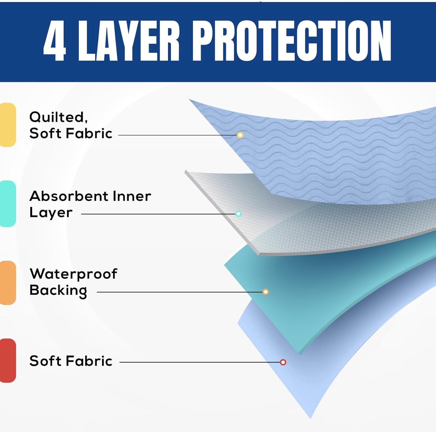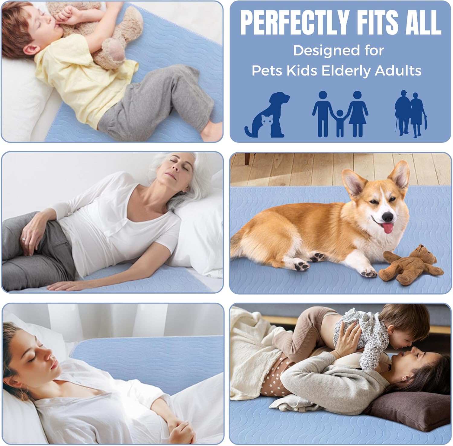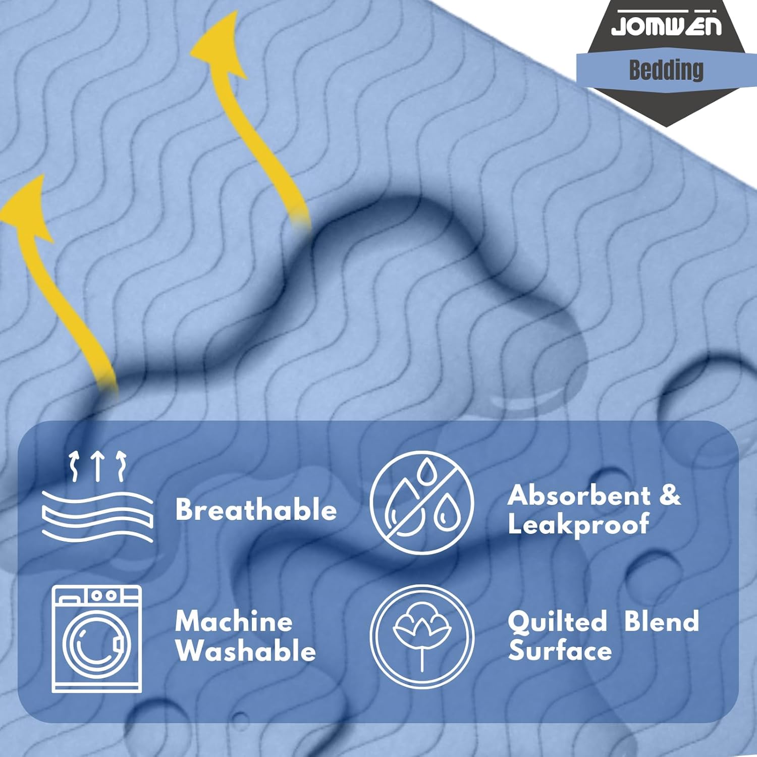 Washable Underpads 86 x 91 CM (2 Pack), JOMWEN Heavy Absorbency Reusable Incontinence Bed Pads for Adults, Kids, Elderly and Pets, Absorbent Protective Pads for Bed, Couch, Floor (Blue, 34″ x 36″)
