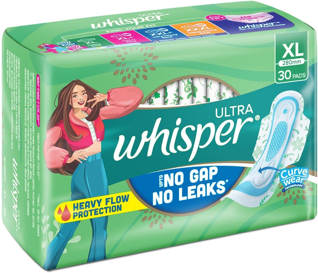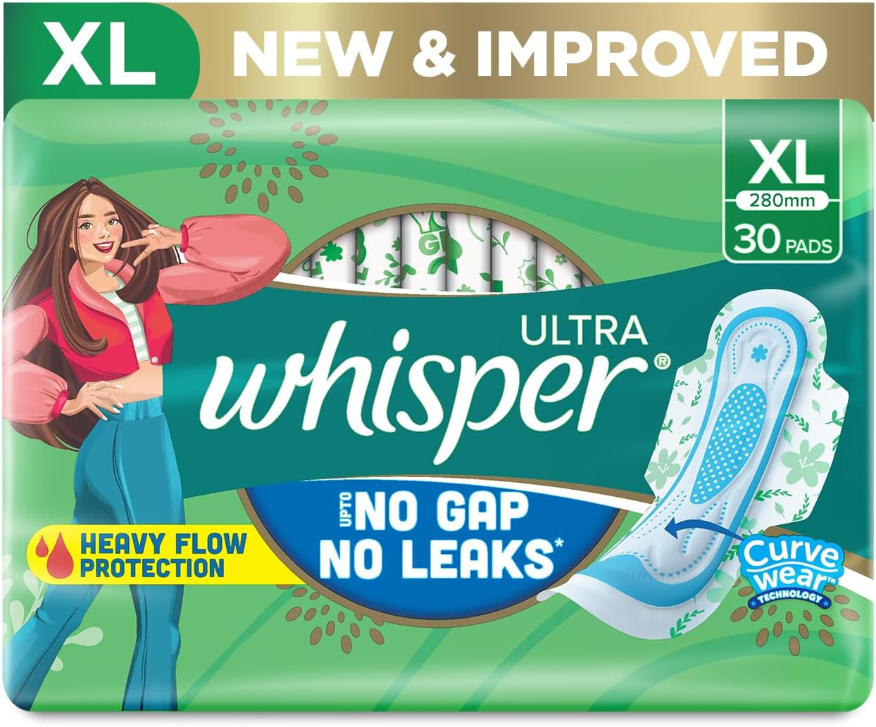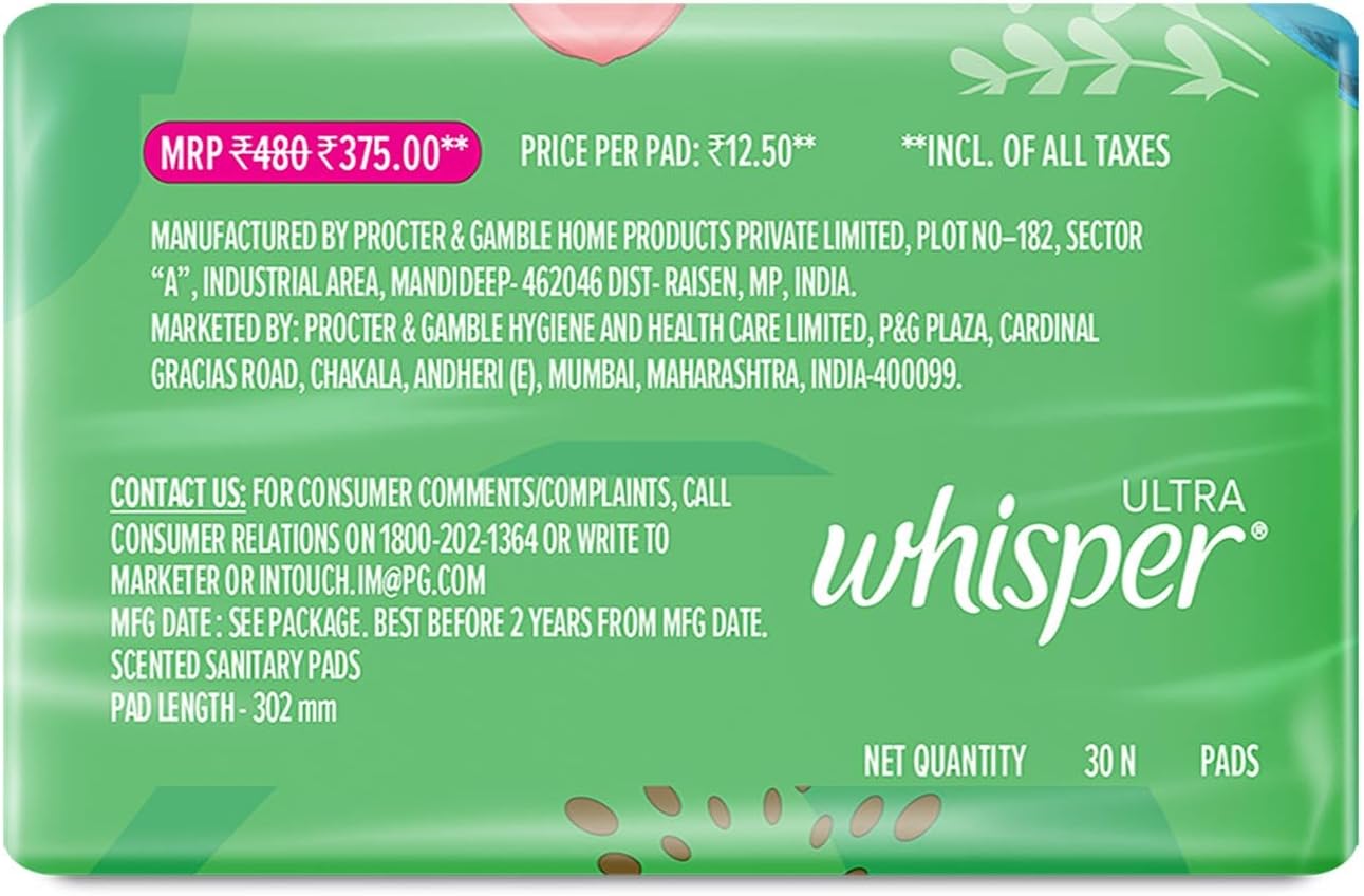 Manufactured by Whisper, a leader in sanitary products for women.