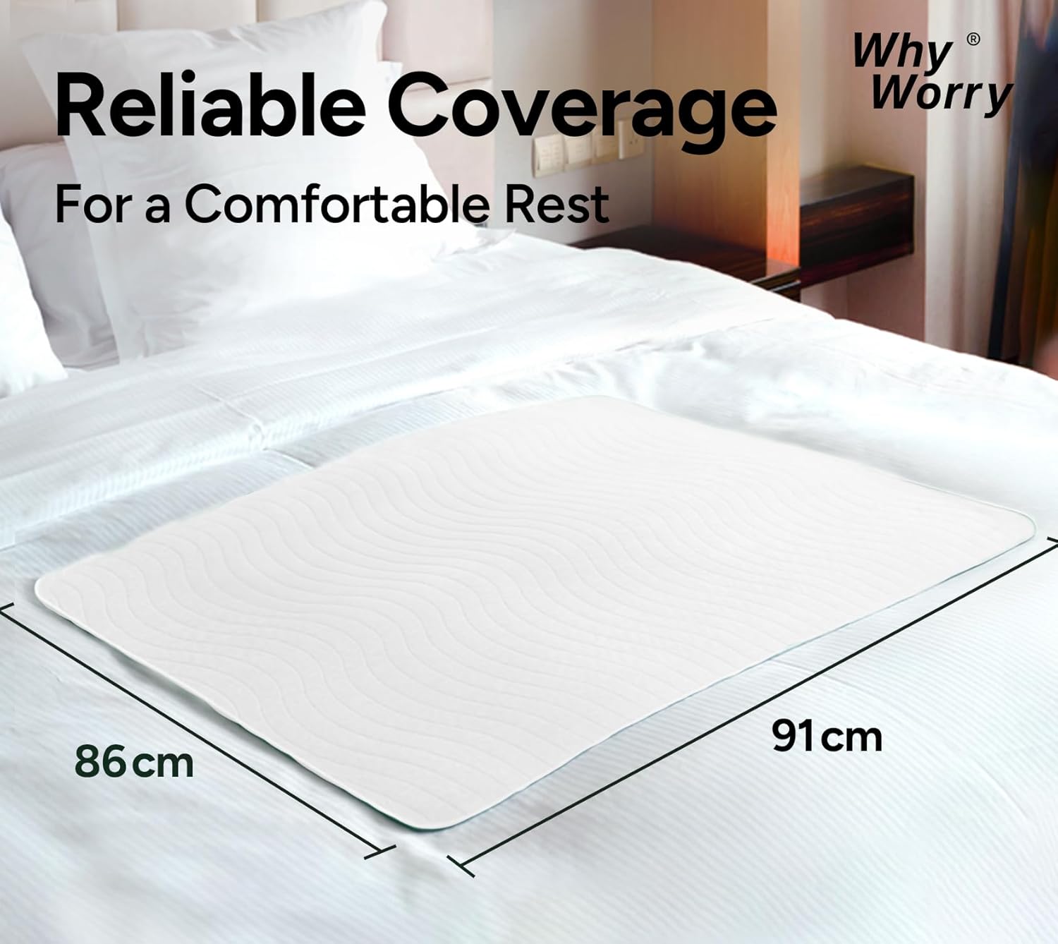 The WhyWorry Washable Bed Pads are designed for adult incontinence, providing a reliable solution for bed wetting. Measuring 86x91cm, these pads are made from heavy absorbent materials, ensuring comfort and protection. They are reusable and washable, making them an eco-friendly choice. Ideal for both elderly individuals and kids, these pads help maintain hygiene and cleanliness in bedding.