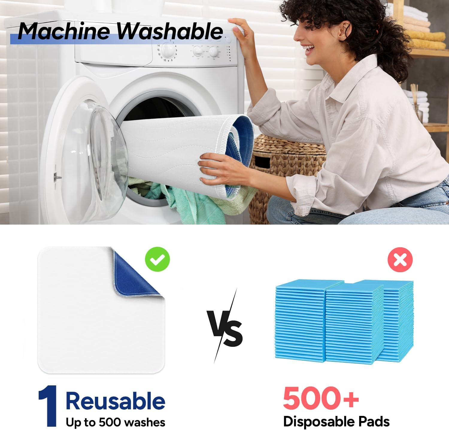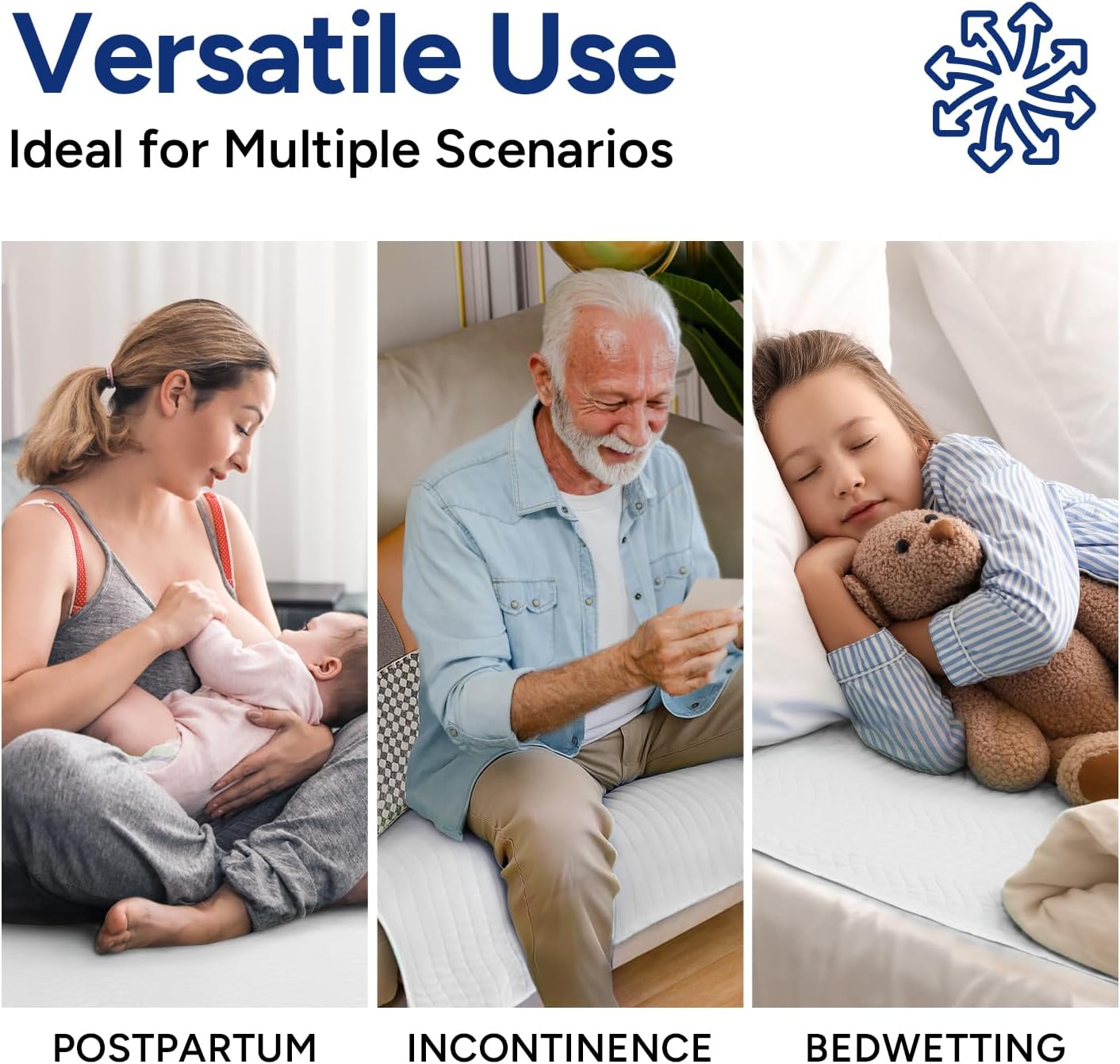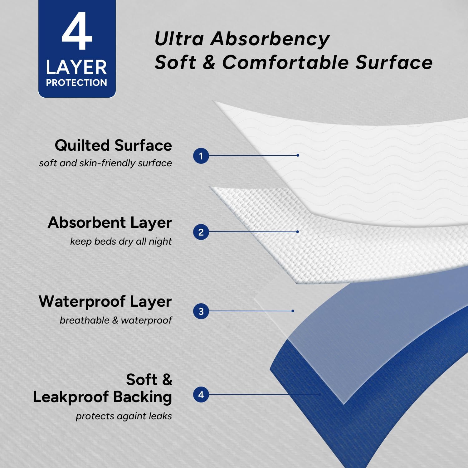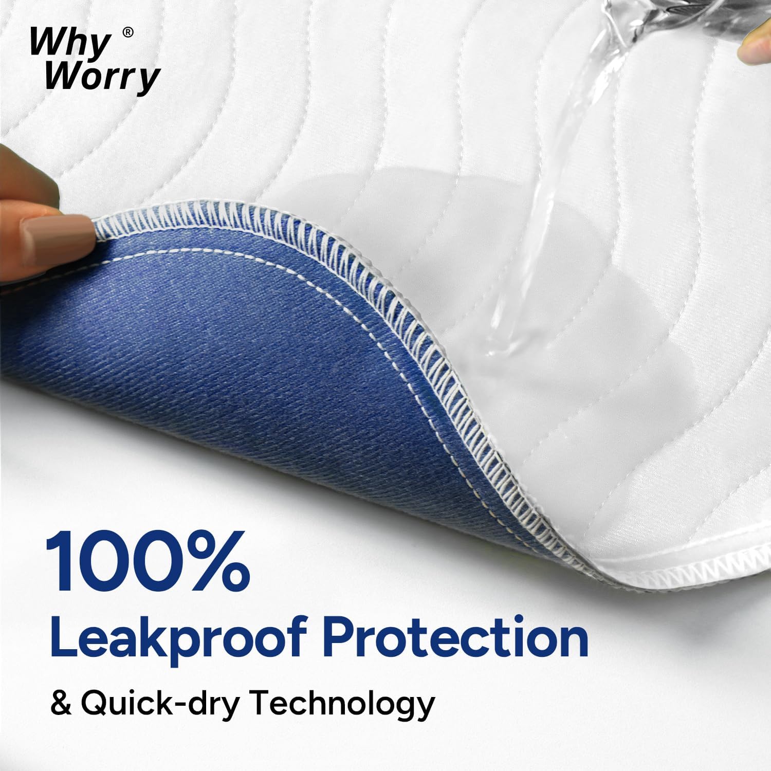 WhyWorry Washable Bed Pads for Adult Incontinence, 86x91cm (Pack of 4) Waterproof Mattress Protector for Bed Wetting, Heavy Absorbent Reusable Underpads for Elderly & Kids, Washable Pee Pads, White