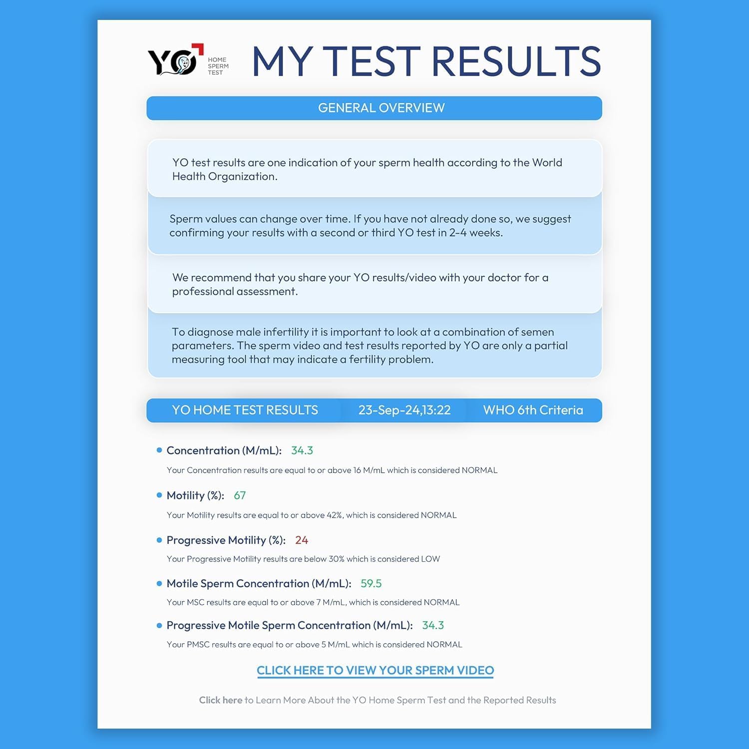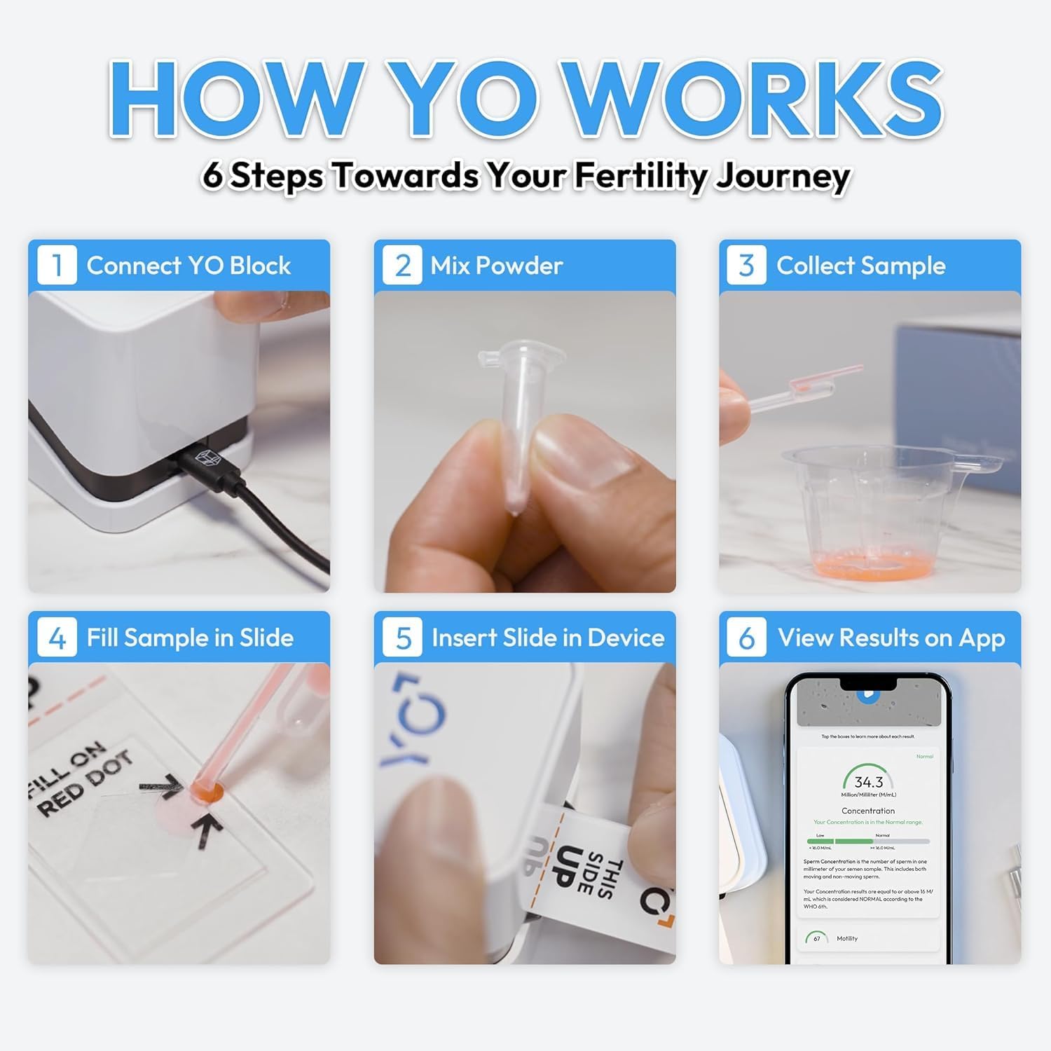 Discover your fertility potential from the comfort of home with the YO Home Test, an FDA-cleared, at-home semen analysis kit. This innovative product provides reliable results in just minutes, offering insights into key health parameters such as concentration, motility, and progressive motility.